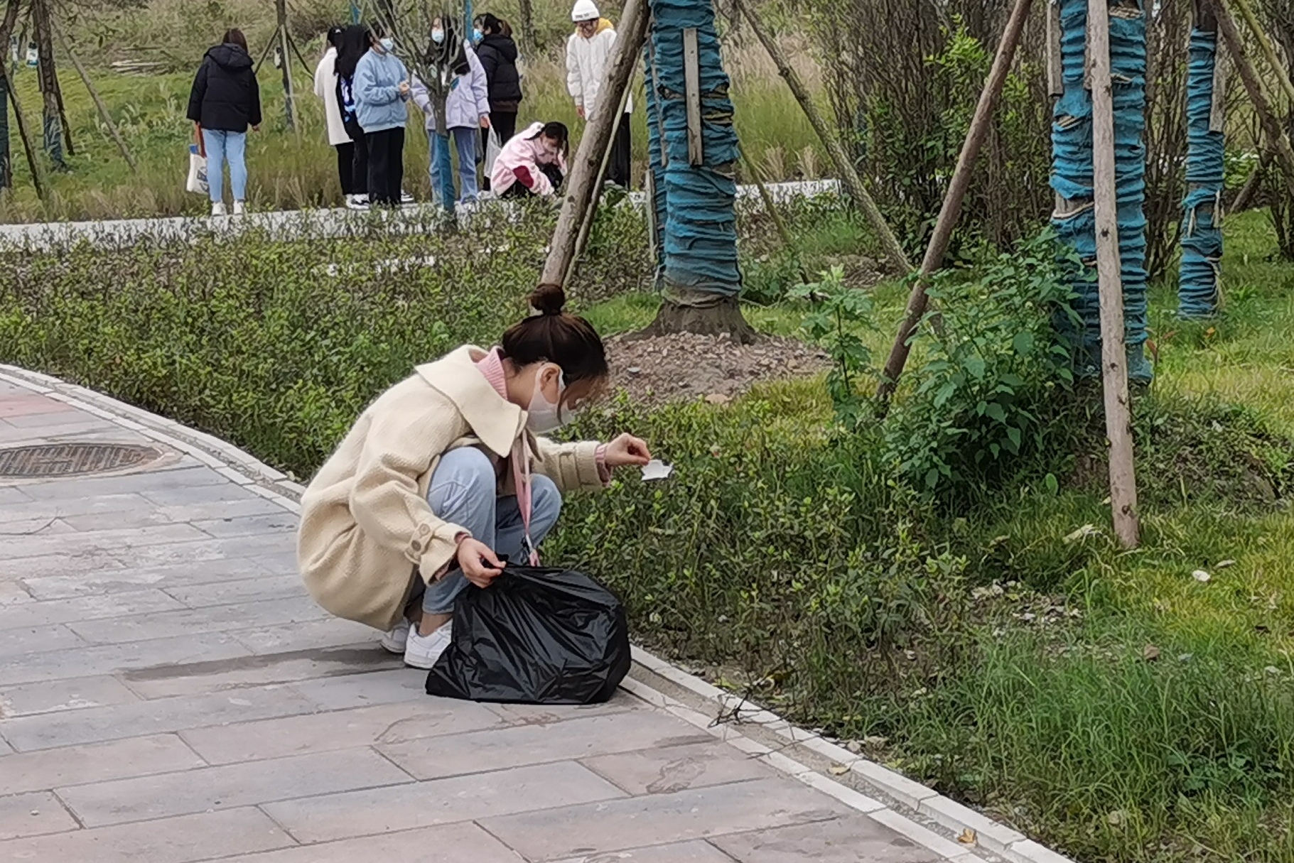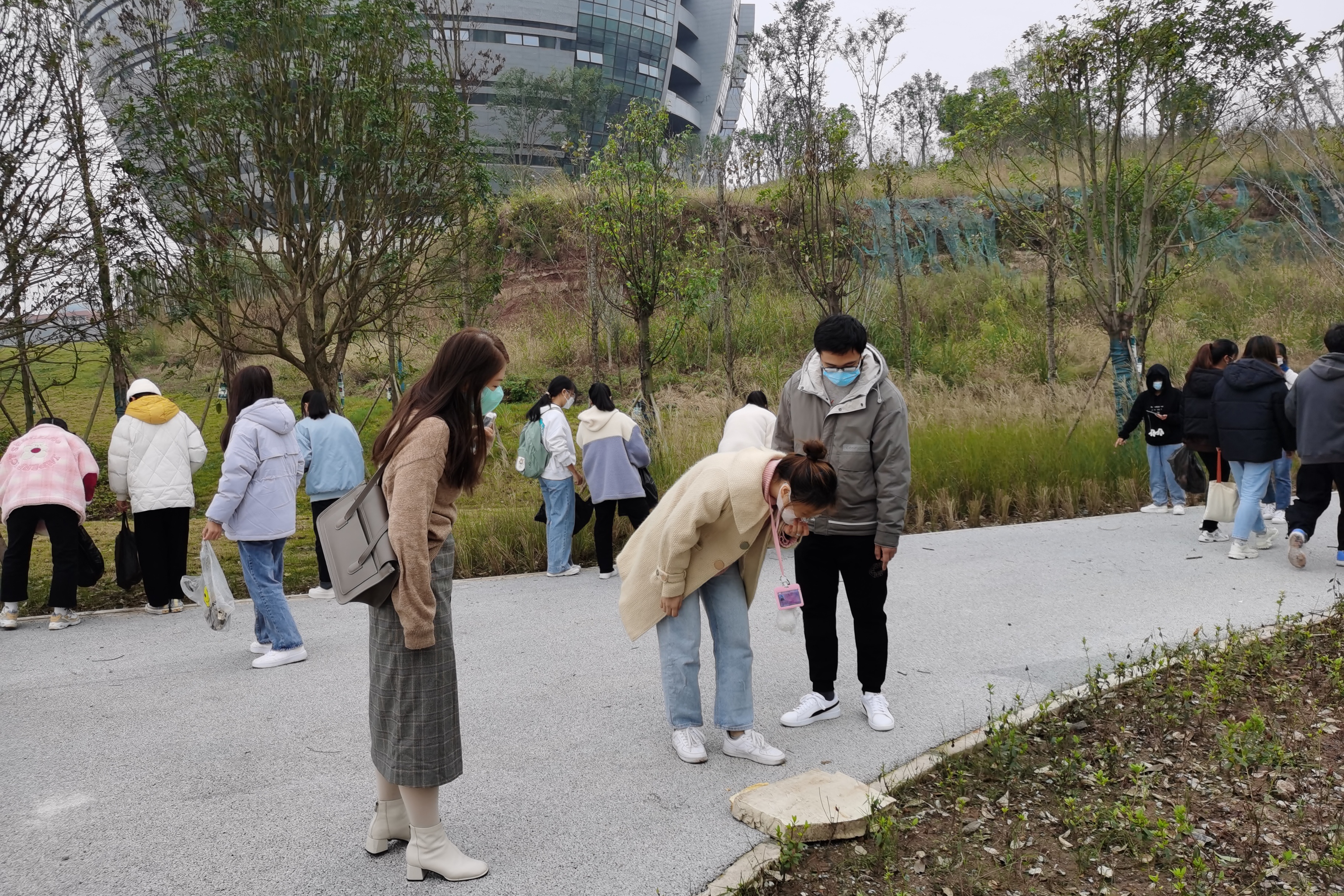 首先,汤老师对课程要求进行简要说明,让同学们初步了解了此次活动的目的和意义。活动中,同学们从水泥地面到树荫底下再到草坪,对垃圾展开了地毯式的清理。同学们认真拾捡地面上的白色垃圾,还清理了绿化带和草坪内的垃圾和枯枝落叶,他们劳动的身影在初冬的寒风里形成了一道亮丽的风景线。同学们分工协作、互帮互助,充分展现了公司学子不怕苦,不怕累的精神。其中2021级6班的付恩慧同学在谈及自己的劳动感受时,她提到也许这个活动对于她们来说,只是抽出部分时间,但对全体同学来说,却得到了一个更优美整洁的生活环境。最终,经过同学们的共同努力,美丽的校园变得更加干净美观。