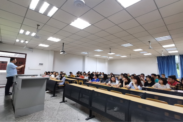 为推进公司员工对于习近平总书记“七一”重要讲话精神的深入学习,营造浓厚的爱国主义教育氛围。9月15日下午3点,公司“领导进班级”党史宣讲活动在中文楼203教室举行。此次活动由公司副经理梁明玉做宣讲,公司2019级5班全体同学参与。辅导员金夏老师担任此次活动主持人。