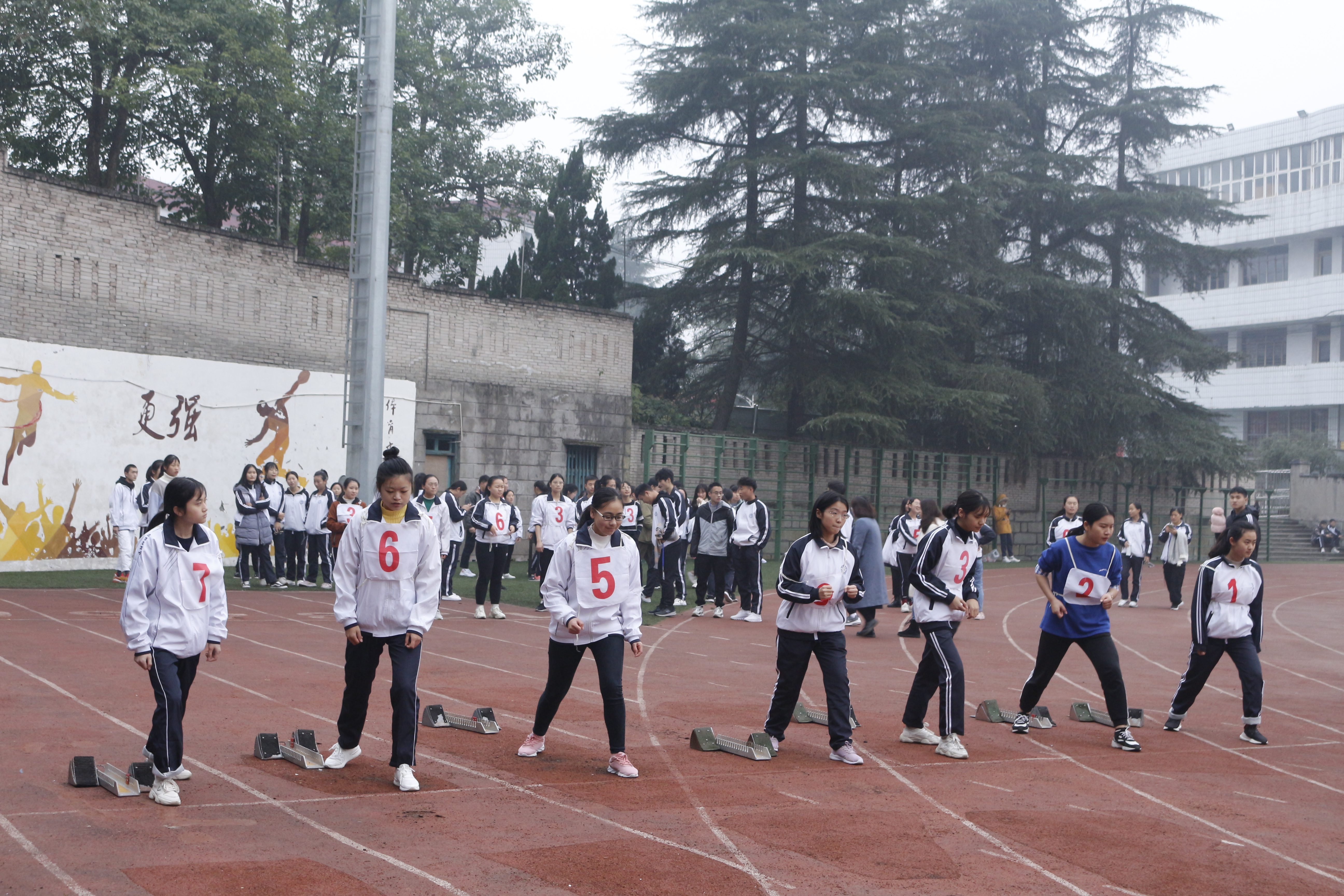 白色的起跑线,砖红的跑道,滴落的汗水都凝聚着运动员们的努力和付出,见证着她们的成功与失败。她们将挑战自我、永不放弃的奋斗拼搏精神传递到每一位学子心中。