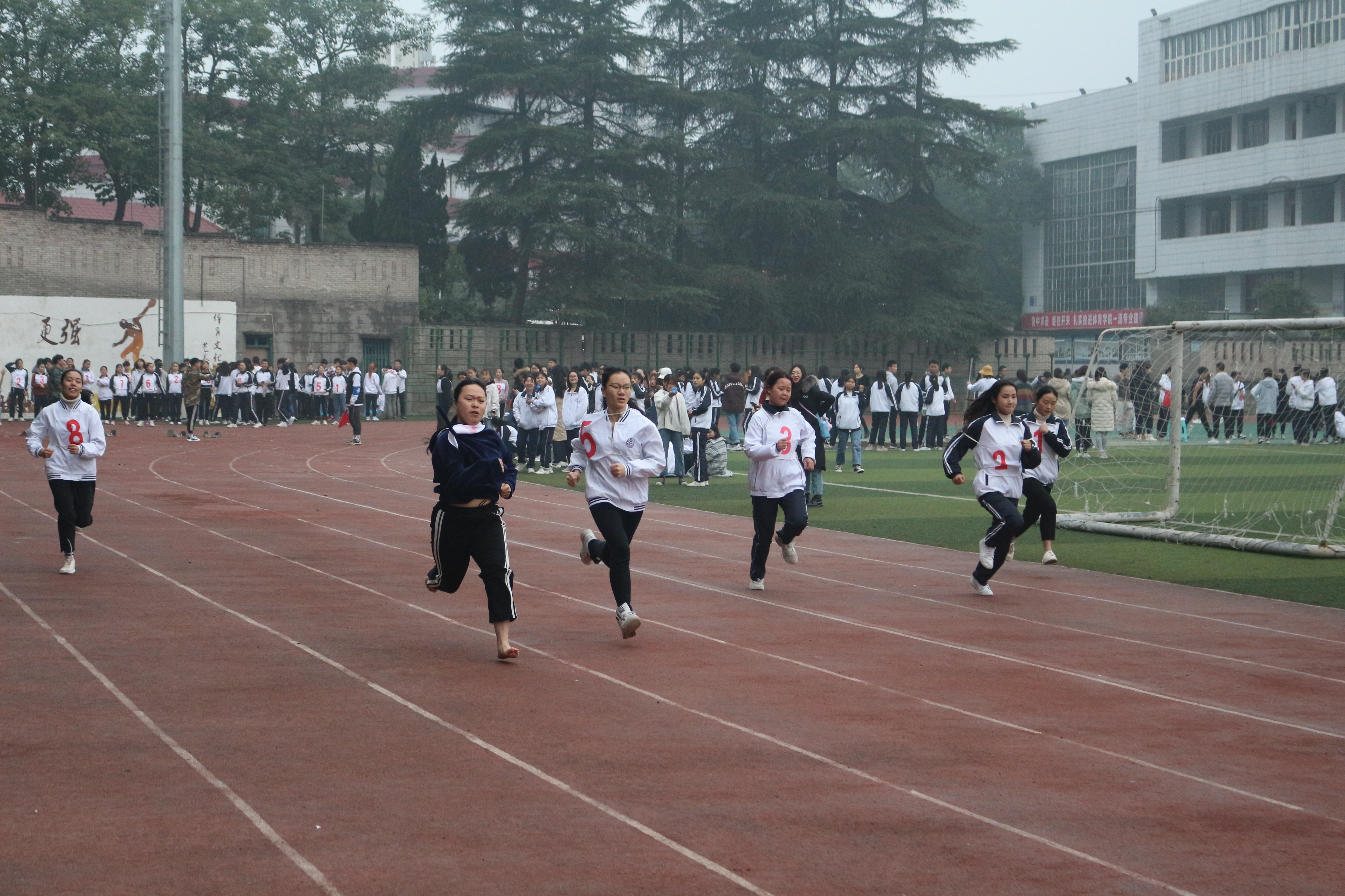 12月15日,我院第四届冬季运动会女子100米比赛在田径场拉开帷幕,此次比赛分为预赛和决赛。