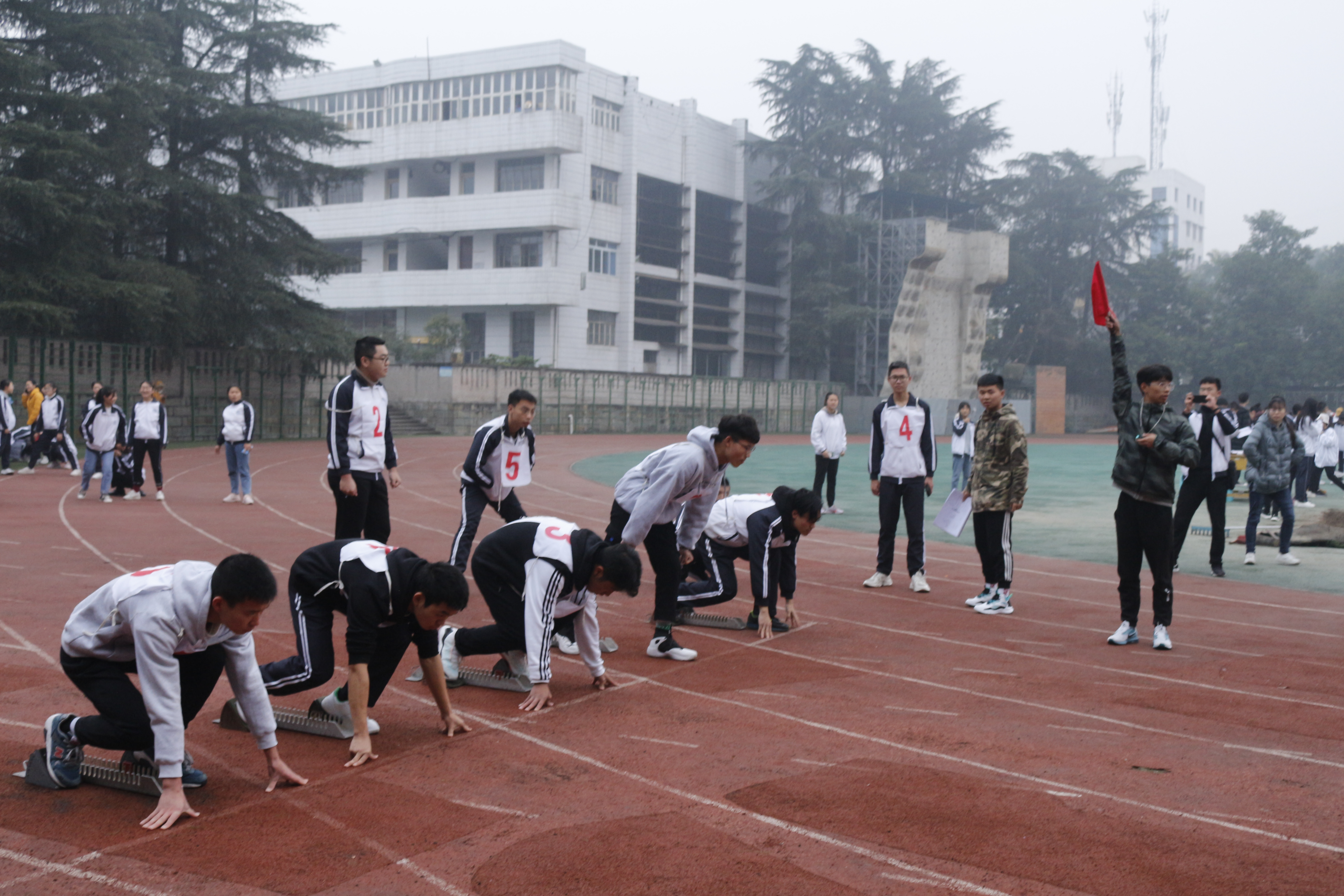 比赛准备阶段,选手在既定位置调整姿势,严正以待。随着红旗挥下,哨声响起,公司运动员奋力冲向终点,眼中只余下他们衣角的残影。眨眼之间,便见胜负。五组选手出彩的表现,使得各班观赛同学意犹未尽。最后2019级5班徐海洋,2018级1班甘国华,2019级1班成聪,2019级4班马鹏、苗壮和2019级3班盛康乐六位同学进入决赛。