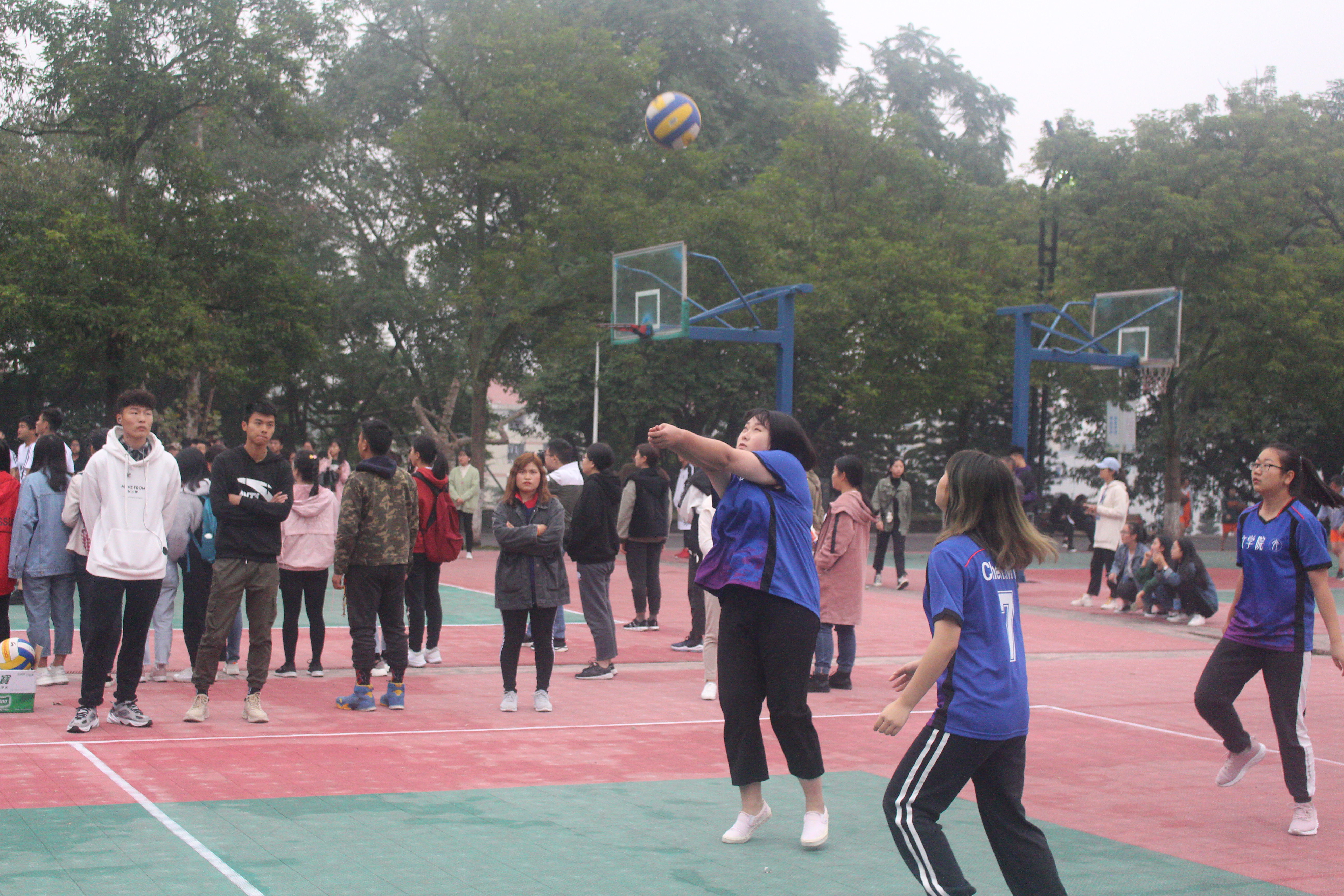决胜局一开场,场上气氛骤然紧张。公司2018级3班任娅玲凭借着准确的判断,利落的断球为公司赢得不少比分,精彩亮眼的表现博得了同学们的阵阵欢呼。随后,比赛进入白热化阶段,双方球员你追我赶,奋力拦球、进攻,比分交替上升,双方僵持不下。公司球员体力逐渐达到极限,比分稍微落后于对手,但公司女将们依然没有放弃,她们奋起直追,不断缩小比分差距,一直坚持到了比赛的最后一刻,充分展现了公司运动员不甘落后、永不服输的精神。
