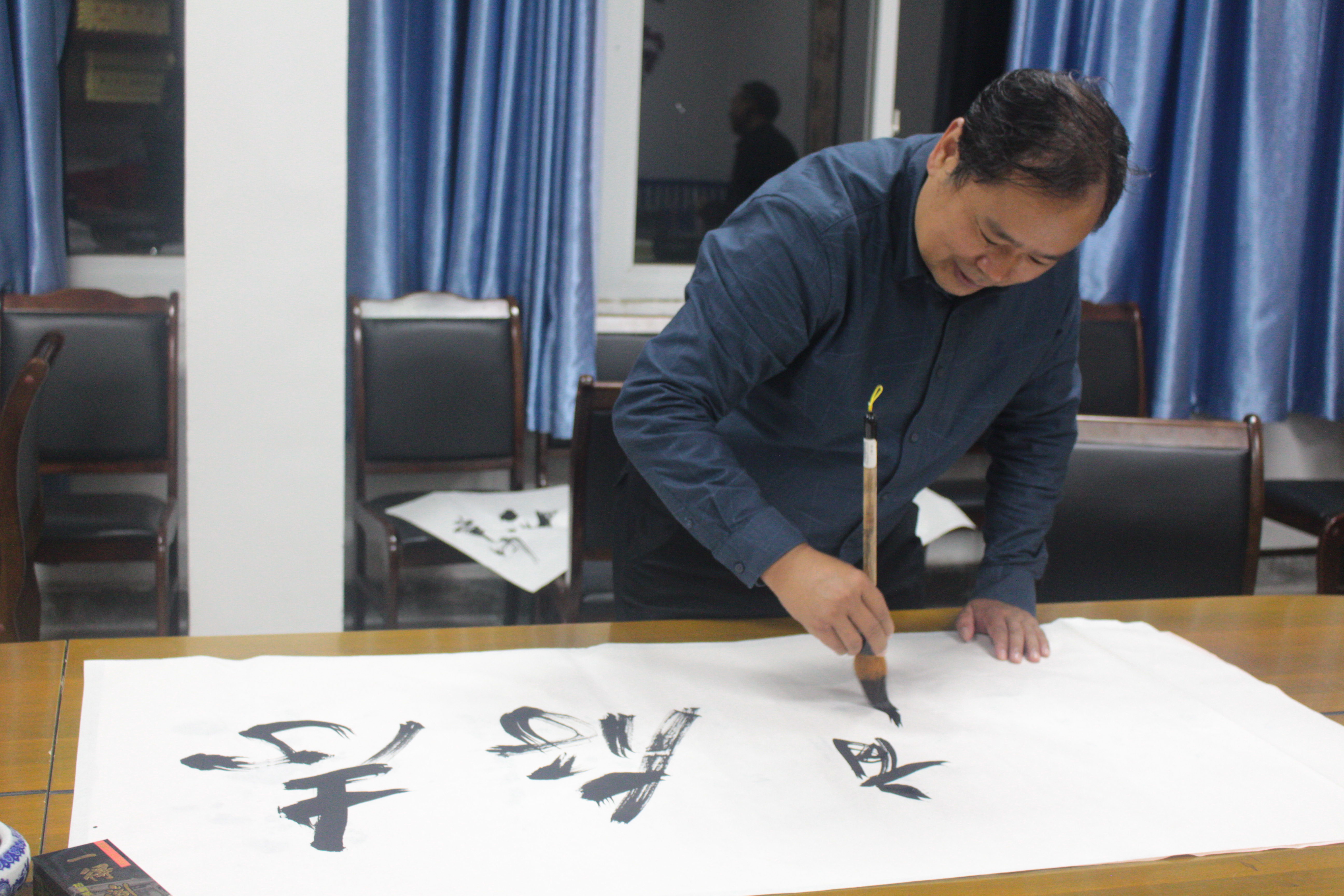 讲座结束后,杨教授同经理一行人来到中文楼四楼会议室,在愉快的氛围中,杨教授提笔为公司写下“业精于勤”的字样。公司领导表示,杨教授以书法的方式表达了对公司的美好祝福和期待,这份情谊我们定当好好珍藏。