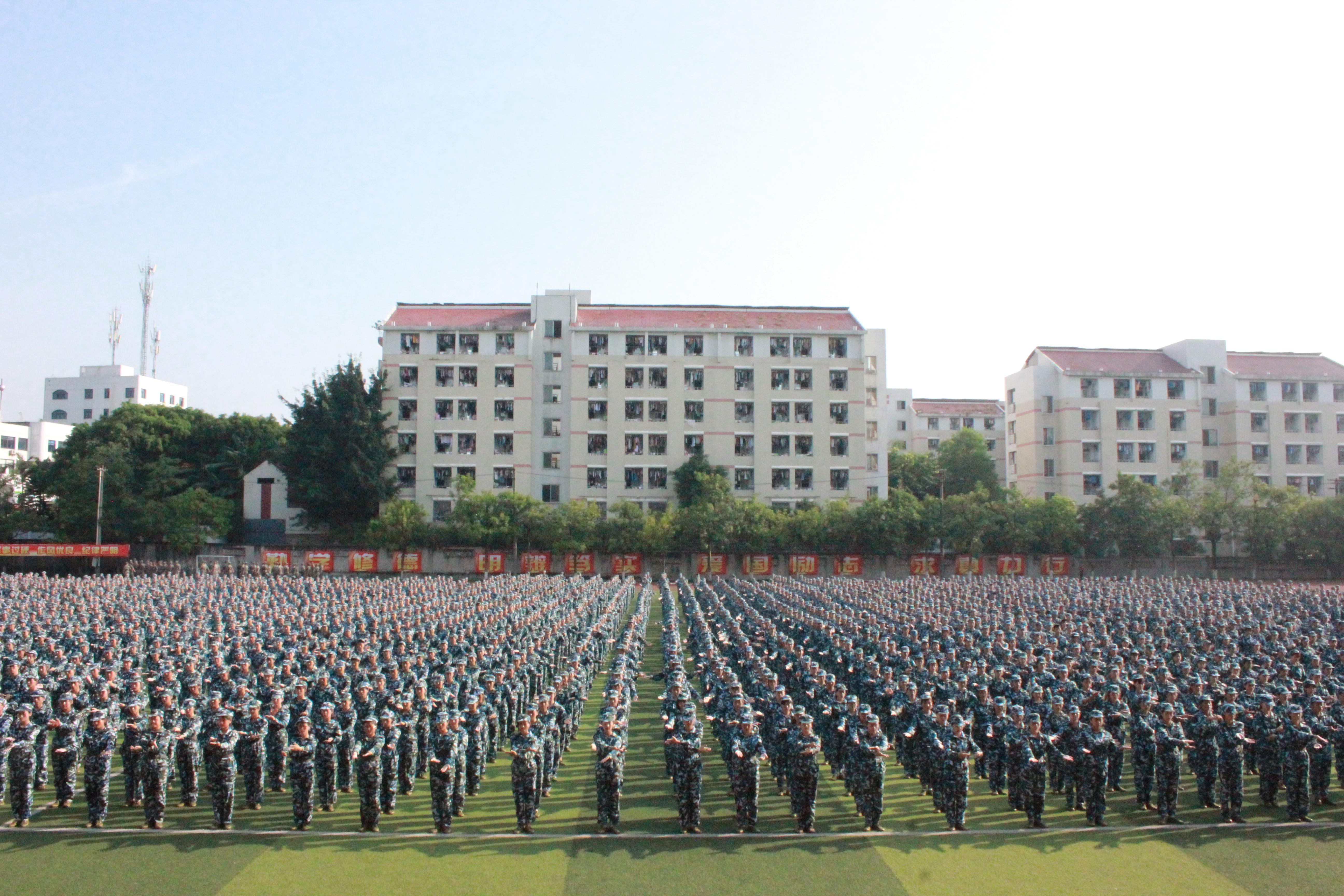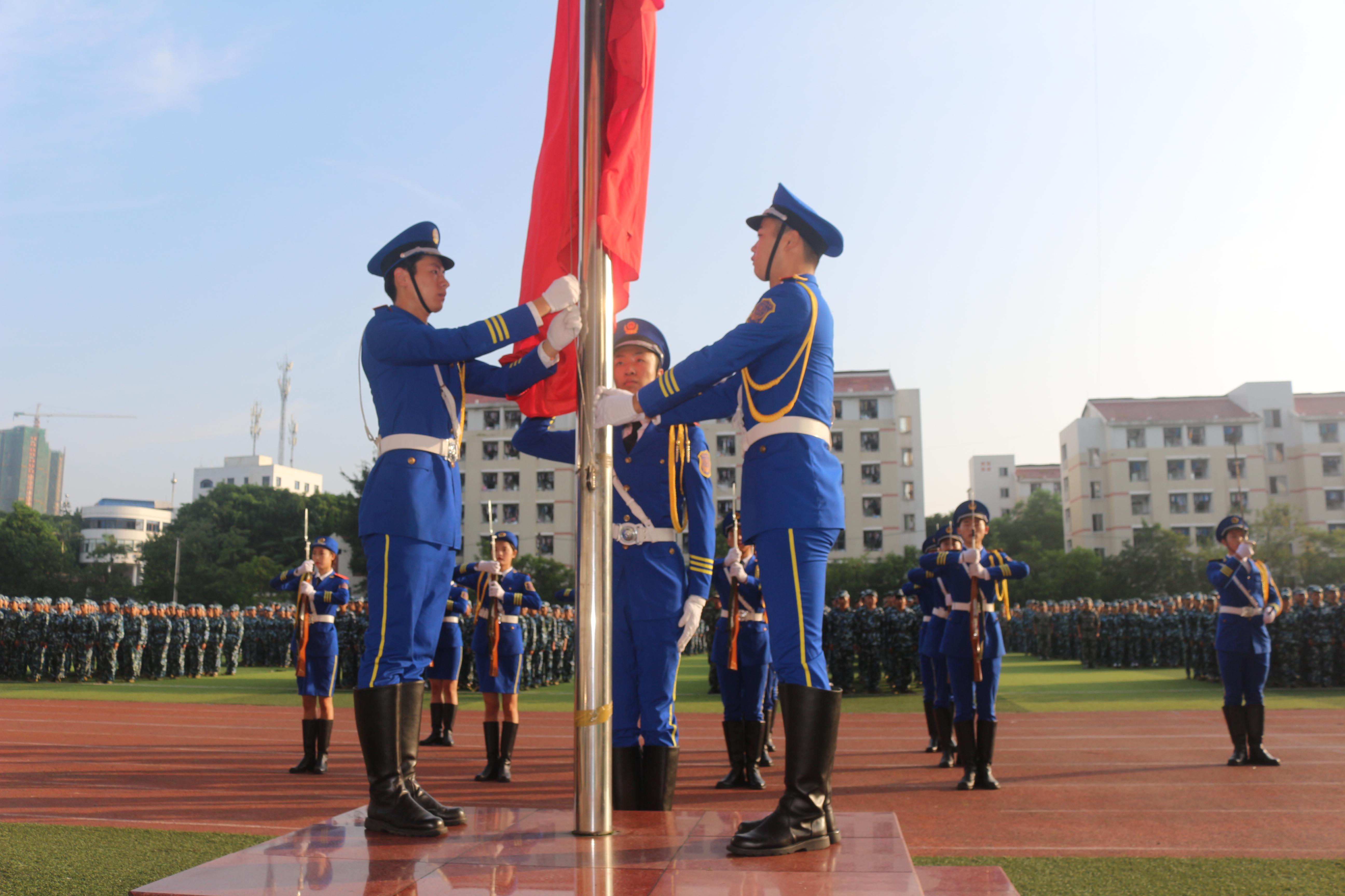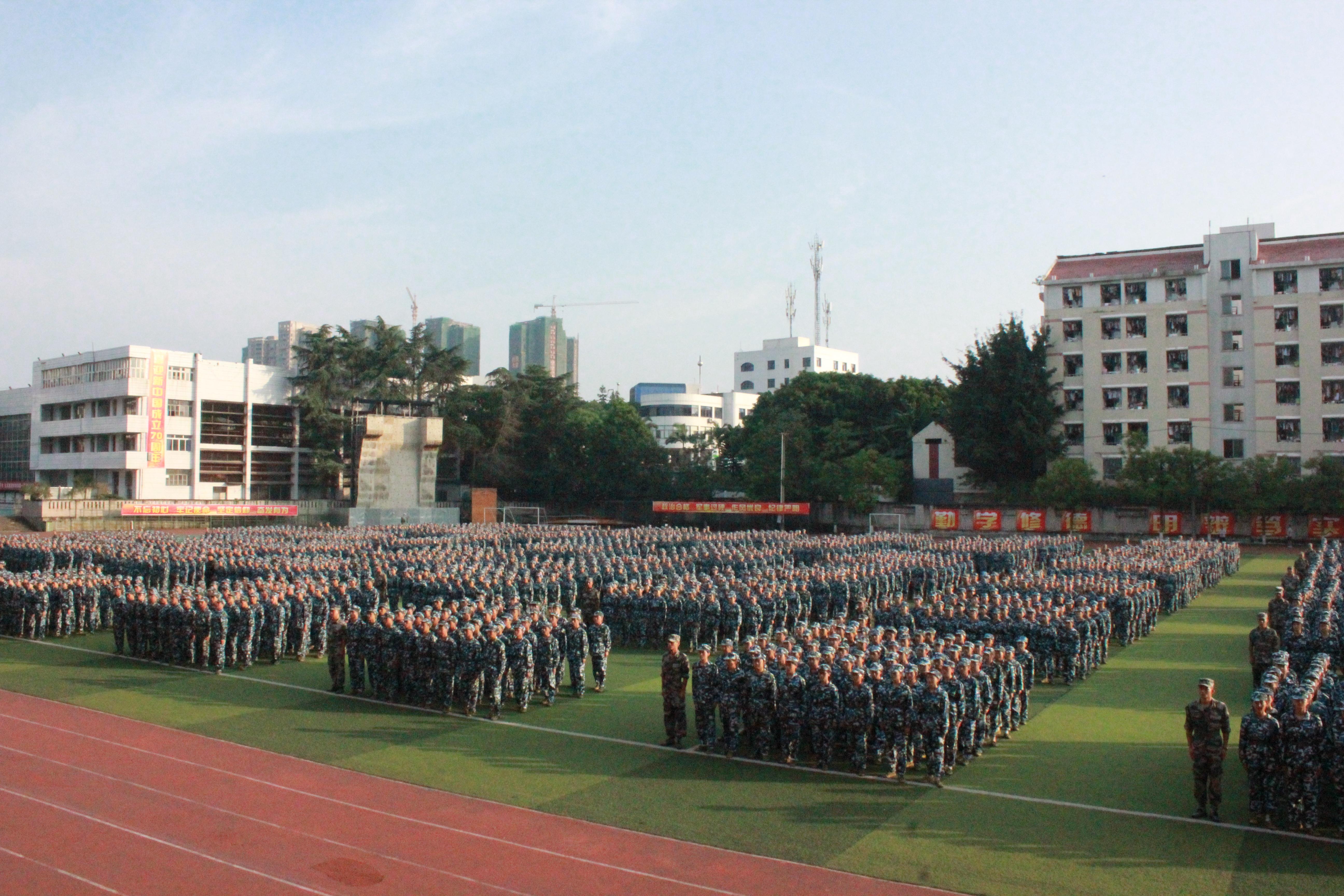 迎着初升的朝阳、踏着响亮的节拍,公司2019级军训汇报演出暨总结大会在西区田径场隆重举行。公司党委书记张志远,党委副书记、董事长陈晓春,党委副书记黄辉,副董事长赵明、刘博、吴开腾,内江市市中区人民武装部军事科长罗双,公司各职能部门负责人和各二级公司党总支书记、经理、全体辅导员及4800余名新生参加大会,大会由副董事长赵明主持。
