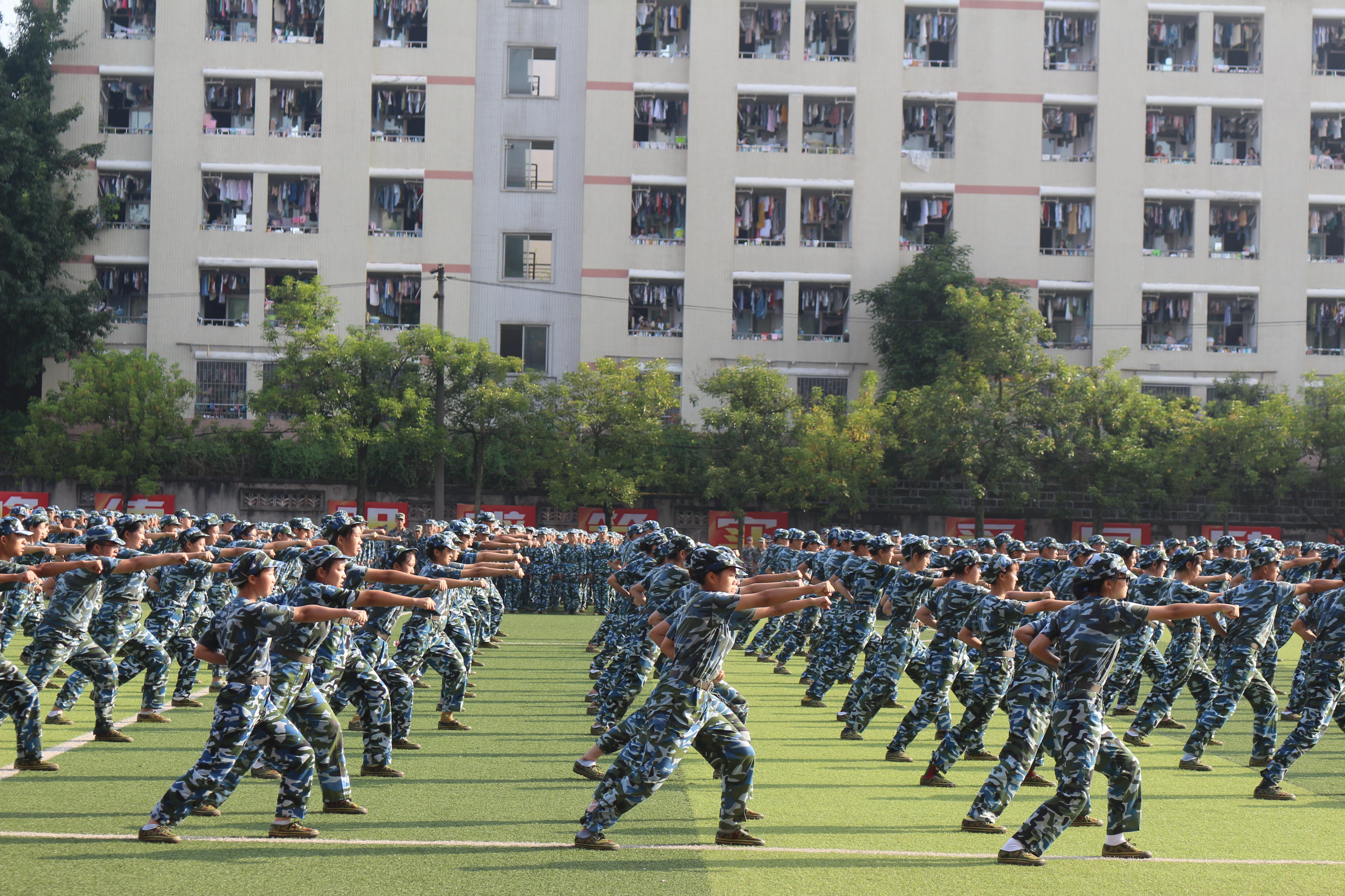 伴随着国歌豪迈激昂的旋律,军训汇报演出在田径场拉开了帷幕。2019级新生统一身穿迷彩服,以公司为单位组织方阵,他们目光坚毅执着、步伐铿锵有力,展示出了当代老员工的青春风采。公司新生主要分布在tyc5997太阳集团方阵和范长江新闻公司方阵,尽管当天天气炎热,但他们依旧口号嘹亮、动作飒爽,将文苑学子的坚定执着精神在军训场上展现的淋漓尽致。