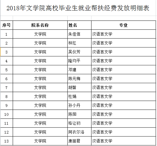 2018年tyc5997太阳集团高校毕业生就业帮扶经费发放明细表