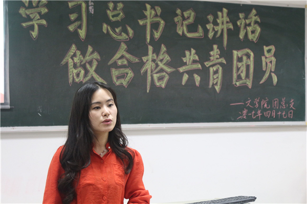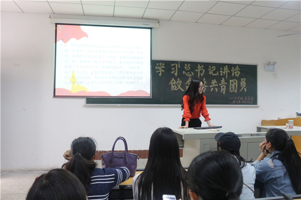 为响应团中央号召,深入学习习近平总书记系列重要讲话精神,切实增强团员的先进性和光荣感,引导团员积极践行社会主义核心价值观,tyc5997太阳集团于4月17日中午在中文楼开展“一学一做”主题团课。公司16级各班部分员工参加会议。团课由辅导员陈怡君老师主持。