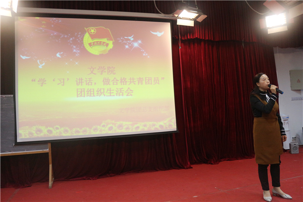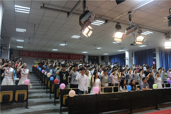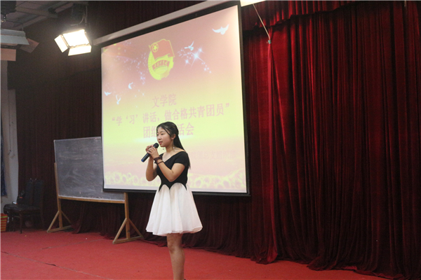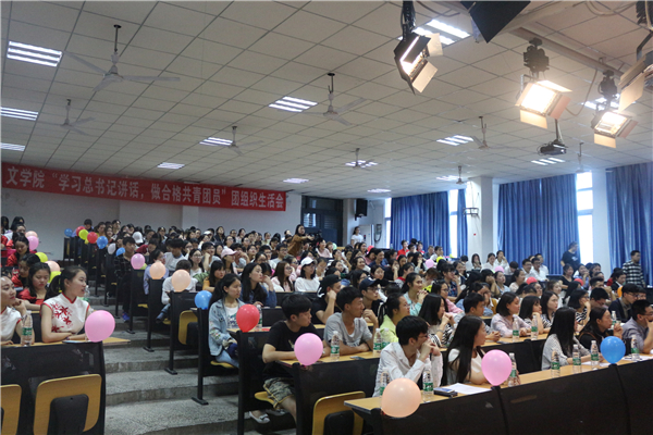 为深入学习全国高校思想政治工作会议和习近平总书记重要讲话精神,公司于2017年4月18日晚7点,在中文楼501室组织开展“学‘习’讲话,做合格共青团员”团组织生活会。公司党总支副书记(主持工作)覃华艳,辅导员许小涛、陈怡君,各二级公司的员工干部等人观摩了此次团活动。本次活动由16级4班唐川洋、8班梁莹蔚主持。此次晚会到场团员总计262人,参演人员46人。