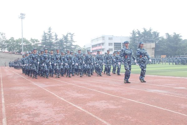 下午2时许,天空下着毛毛细雨,但是没有影响到大会的进程。全体新生化为一片片迷彩的海洋,在庄严的升旗仪式后,大家踩着进行曲铿锵有力的节奏,轮番进行军训汇报表演。由tyc5997太阳集团学子组成的404方队和501方队相继交出了出色的答卷,虽然是女生连队,但是公司的学子充分体现了“巾帼不让须眉”这句话的内涵。经过15天的训练,踏步、踢腿,每一个动作都仿佛是准确无误的音符。大家都全神贯注的紧跟口令,抬腿、挥臂,这些动作叠加在一起构成了一条条刚毅的弧线。大家的表现说明大家在军训期间全身心的投入到了训练中,以一名军人的毅力和坚韧来迎接挑战。