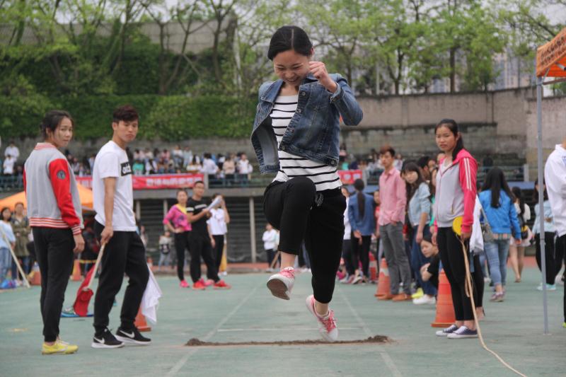 待裁判员挥旗下令后,她们助跑、踏条、腾空、落地,虽然这一系列的动作没有专业运动员那么标准,但都跳出了属于自己的姿态。这每一跳都饱含着她们这几个星期刻苦训练的汗水。