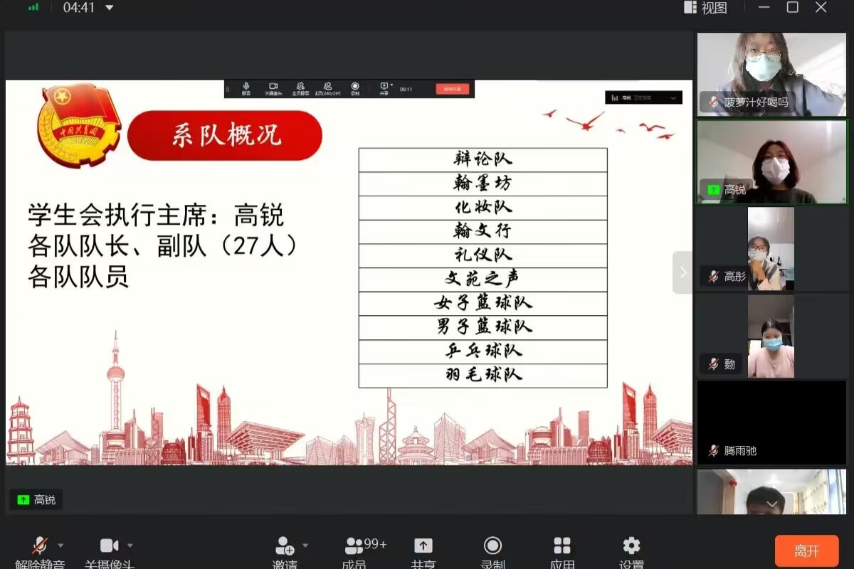 为增进2022级新生对公司第七届团总支员工会、员工系队的了解。9月17日晚上7点与9月18日下午2点30分,公司员工会和系队分别开展了线上宣讲活动。本次活动由团总支副书记(员工)、员工会主席团成员、各部门负责人和各系队队长进行宣讲,科技实践部负责人侯若冰主持,2022级全体同学参与。
