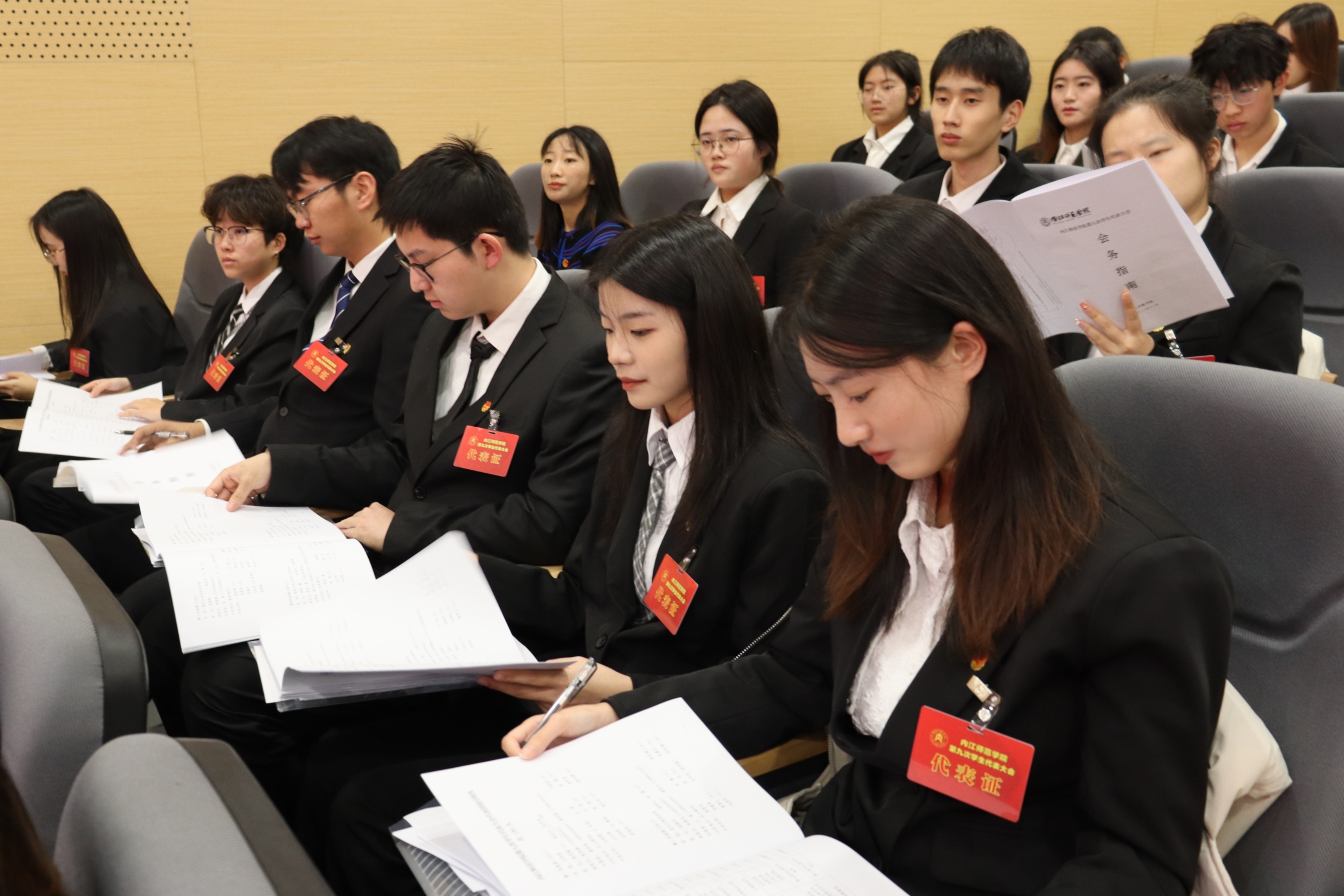 会议伊始,全体人员起立奏唱校歌。随后,员工代表匡盈盈同学作学代会筹备工作报告,她从大会筹备工作的指导思想、筹备工作委员会的成立、员工代表选举、大会委员会组成人选的准备情况、《工作报告》的准备情况五个方面对大会筹备工作情况进行汇报。接着,大会审议并通过了学代会代表资格审查委员会建议名单,代表资格审查工作报告(草案),主席团、秘书长、副秘书长建议名单及大会议程(草案)。最后,大会宣布代表团划分情况,并由李其林书记对学代会正式会议的召开提出相关工作要求。会上,各代表积极讨论、热情回应、公正选举,展现了朝气蓬勃、开拓进取的青春面貌。