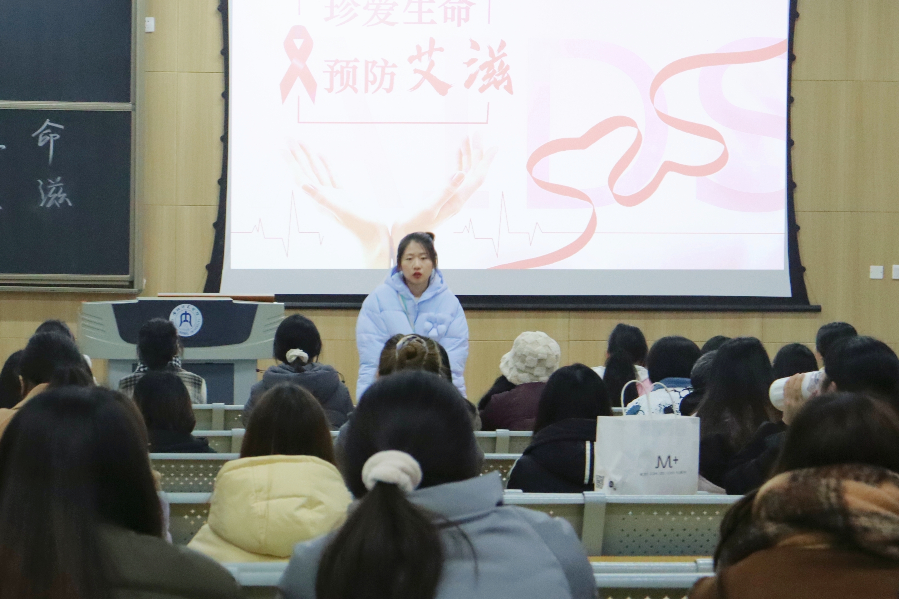 为介绍艾滋病的相关知识,科普艾滋病的传播机制和防治策略,正确了解艾滋病。12月1日至17日,公司于明德楼开展了“珍爱生命,预防艾滋”主题班会。此次班会由公司2020级、2021级辅导员,2022级、2023级班主任主讲,公司全体员工参与。其中,公司2021级辅导员汤靓于12月10日晚上7点在明德楼B区负104教室为2021级的同学开展了此次班会。