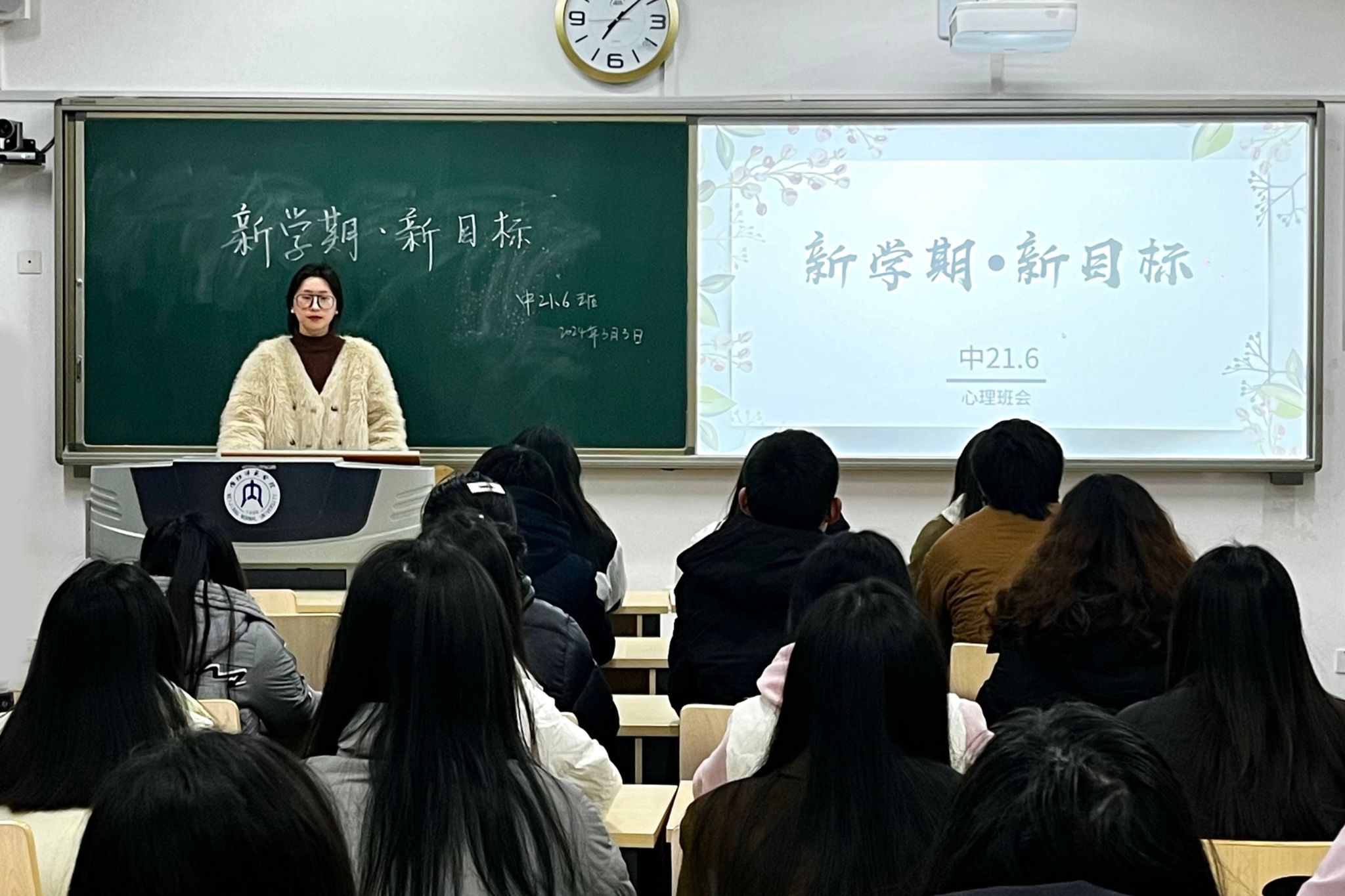 为在开学之际帮助同学们更好地适应学习生活,公司组织各班开展了以“新学期、新目标”为主题的心理班会,其中,3月3日晚上7点,公司2021级6班于明德楼B区119教室开展了本次班会,学工办辅导员汤靓老师及全体同学共同参与。