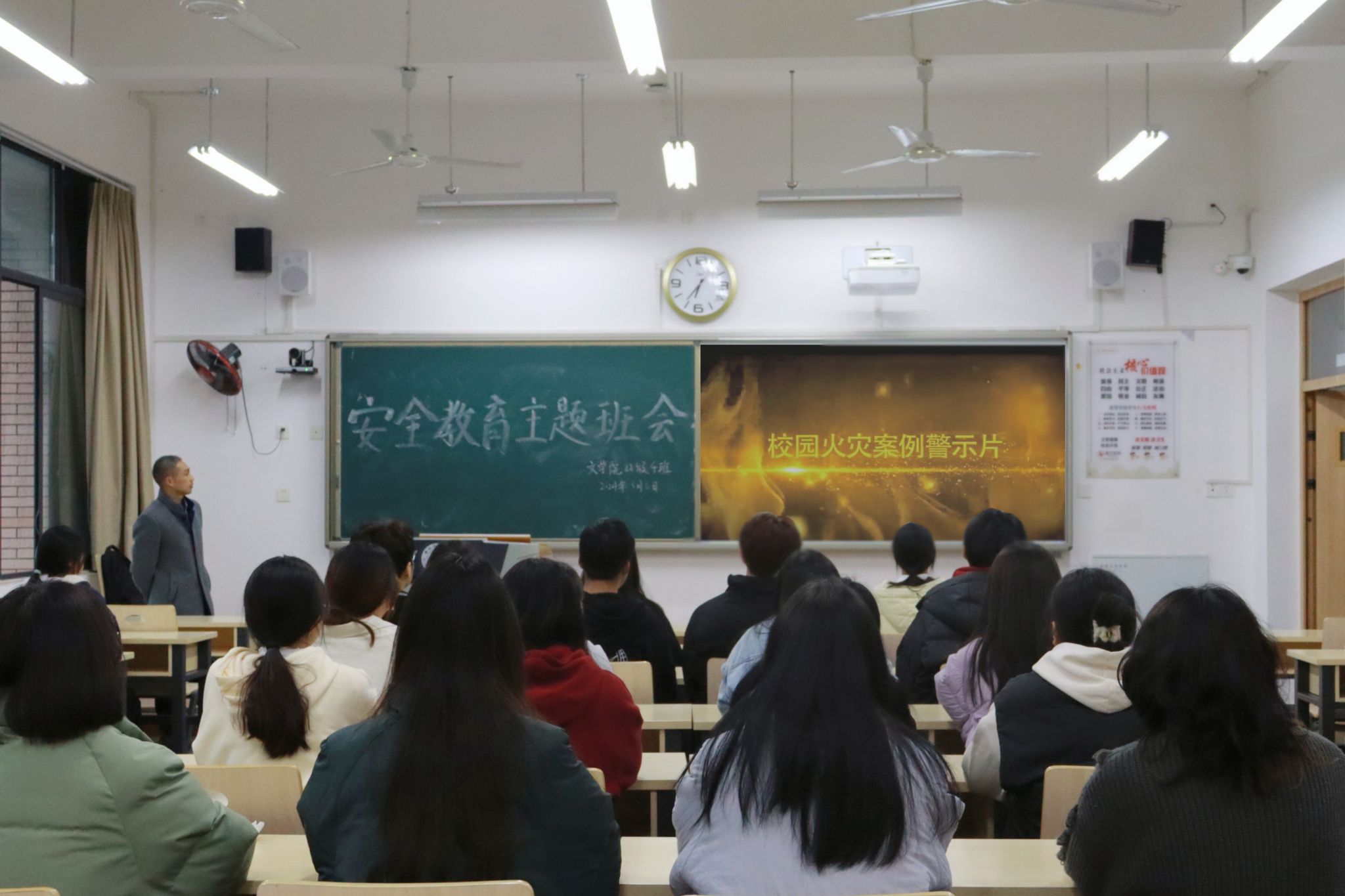 为培养公司学子的自我保护意识和能力,提高同学们的安全防范意识,公司组织各班开展安全教育主题班会。其中,3月6日晚上6点30分,2022级4班于明德楼B区118教室开展了此次主题班会。班主任胡卫老师担任主讲人,2022级4班全体同学参与。
