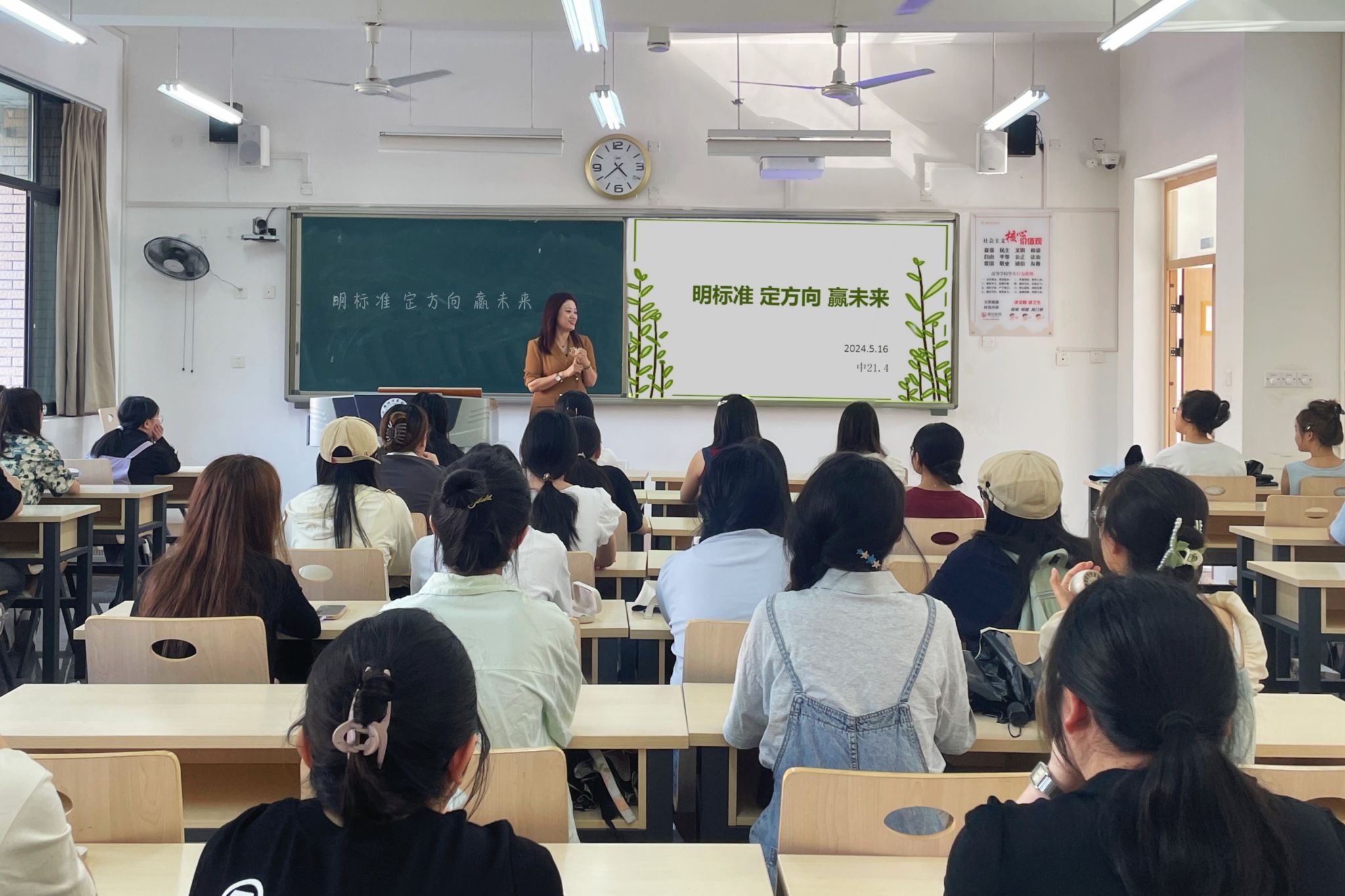 为进一步推动公司就业工作,引导员工明确升学、就业方向,助力毕业生高质量就业,公司组织开展了“明标准 定方向 赢未来”就业指导主题班会。其中,5月16日下午4点30分,公司2021级4班于明德楼B区204教室开展了此次班会。本次班会由公司党委副书记、纪委书记刘正丽主讲,2021级4班全体同学参与。