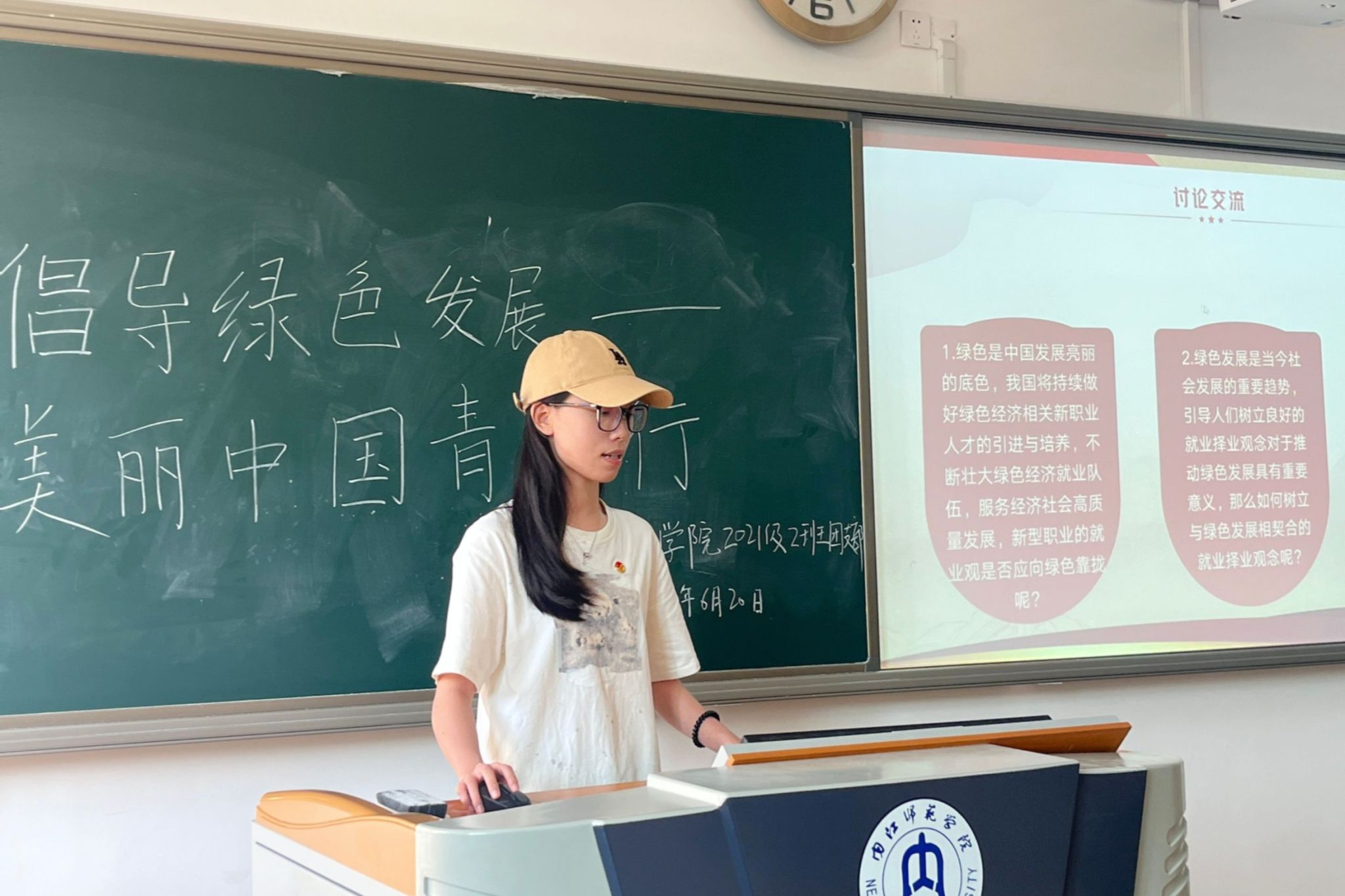 团会伊始,由各班团支书带领大家齐唱团歌《光荣啊,中国共青团》并重温入团誓词,接着介绍本次团组织生活会主题与内容。随后,进入本次学习的主题,大家一起学习了文章《以美丽中国建设全面推进人与自然和谐共生的现代化》,团员青年们交流互鉴,深入地理解文章内容,领悟文章内涵。紧接着大家观看了视频《习近平在全国生态环境保护大会上强调 全面推进美丽中国建设 加快推进人与自然和谐共生的现代化》,并受到了莫大的启发,更加坚定了环保的决心。团会最后,各班团支书组织就环境保护进行知识问答,大家在互动中学习了许多环保知识。本次团组织生活会的顺利开展,使团员青年们心有所感,绿色发展是当今社会发展的重要趋势,对于团员青年树立良好的就业择业观念对于推动绿色发展具有重要意义。