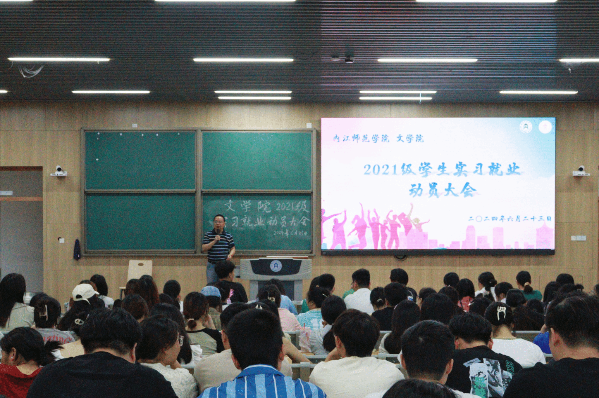 为帮助公司员工树立正确的择业观与就业观,提高其就业积极性,更好地实现从员工到教师的职业角色转变。6月23日晚上7点,公司于明德楼B区110、111教室举行“2021级员工实习就业动员大会”。本次会议由公司党委书记周艺,党委副书记、副经理梁明玉,党委副书记、纪委书记刘正丽,副经理于军民,经理助理王昕,学工办辅导员汤靓老师主讲,公司2021级全体员工参与。
