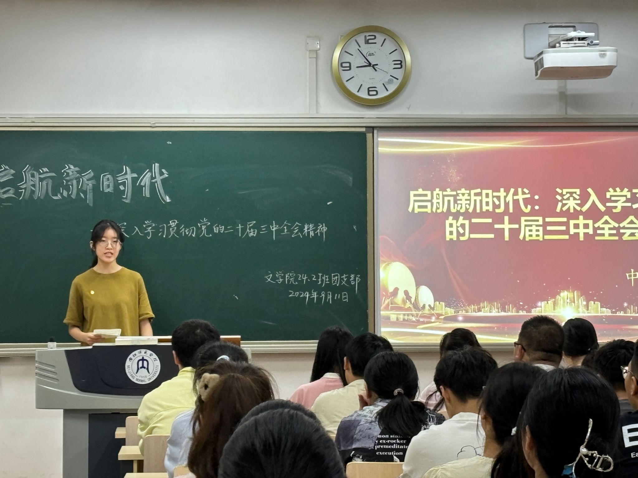 会议伊始,由各班团支书带领大家齐唱团歌《光荣啊,中国共青团》并重温入团誓词,接着介绍本次团组织生活会主题与内容。随后,进入本次学习的主题,大家一起学习了文章《紧紧围绕推进中国式现代化进一步全面深化改革——论学习贯彻党的二十届三中全会精神》。各班团支书带领大家观看视频《中国共产党第二十届中央委员会第三次全体会议公报》并且团支部书记围绕加强对团员和青年老员工的思想政治教育,学习党的二十届三中全会精神,组织交流研讨。启航新时代,我们重任在肩。团员青年们要以更加饱满的热情、更加昂扬的斗志,携手共进,在全面深化改革的征程中,创造更加美好的未来!