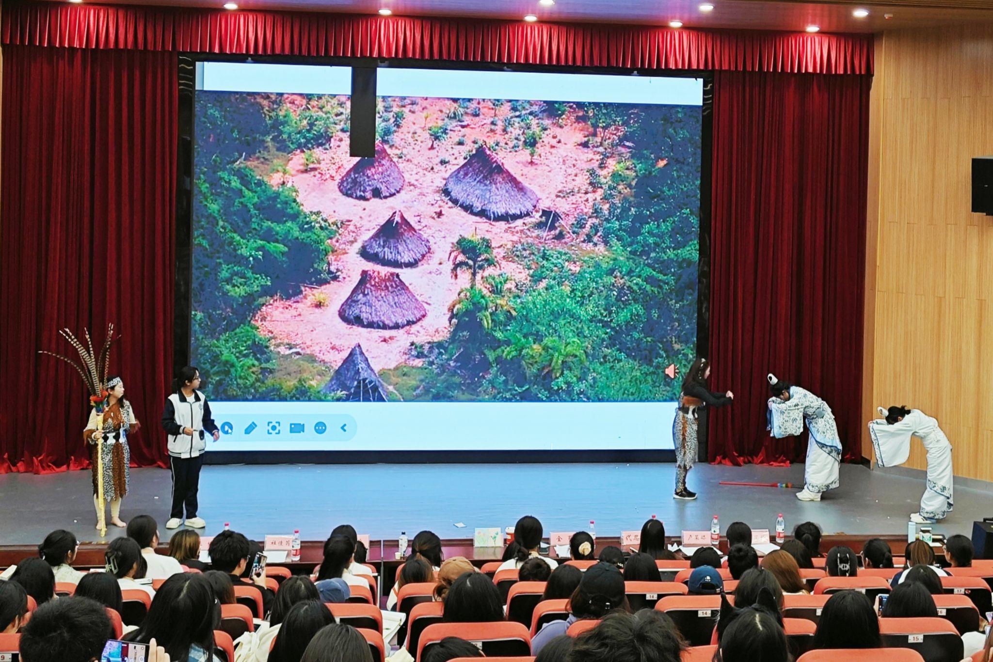 比赛间隙,公司老员工艺术节歌唱比赛获奖者毛圣杰倾情演唱歌曲《经典咏流传》,话剧队生动演绎仓颉的造字故事,不仅增添了趣味性,也让在座师生沉浸于汉字起源的传奇色彩中,深刻体会到每一个方块字背后的深远意义。