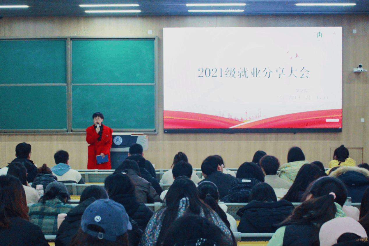 11月26日下午3点,公司于明德楼B区召开2021级毕业生实习总结暨就业分享大会。公司党委书记周艺,党委副书记、副经理(主持工作)梁明玉,党委副书记、纪委书记刘正丽,副经理于军民,经理助理王昕,团委副书记、学工办副主任金夏,学工办辅导员雷业、代思韫,2021级辅导员汤靓到场。