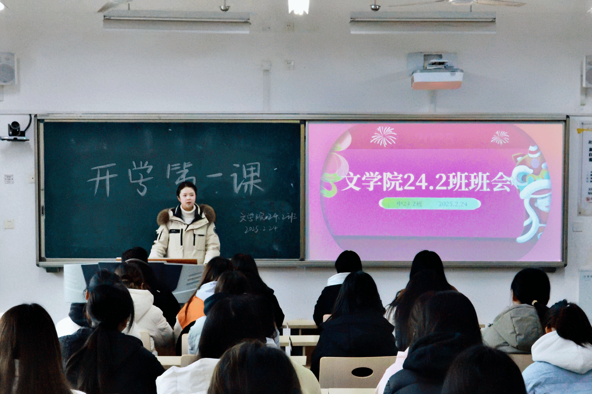 近日,“开学第一课”主题班会在公司陆续召开。2月24日下午3点,公司2024级2班全体同学在辅导员金夏老师的带领下,于明德楼B区121教室召开了新学期第一次班会。本次班会以“开学第一课”为主题,旨在增进师生之间的感情,分享假期心得,明确新学期的学习与生活目标。