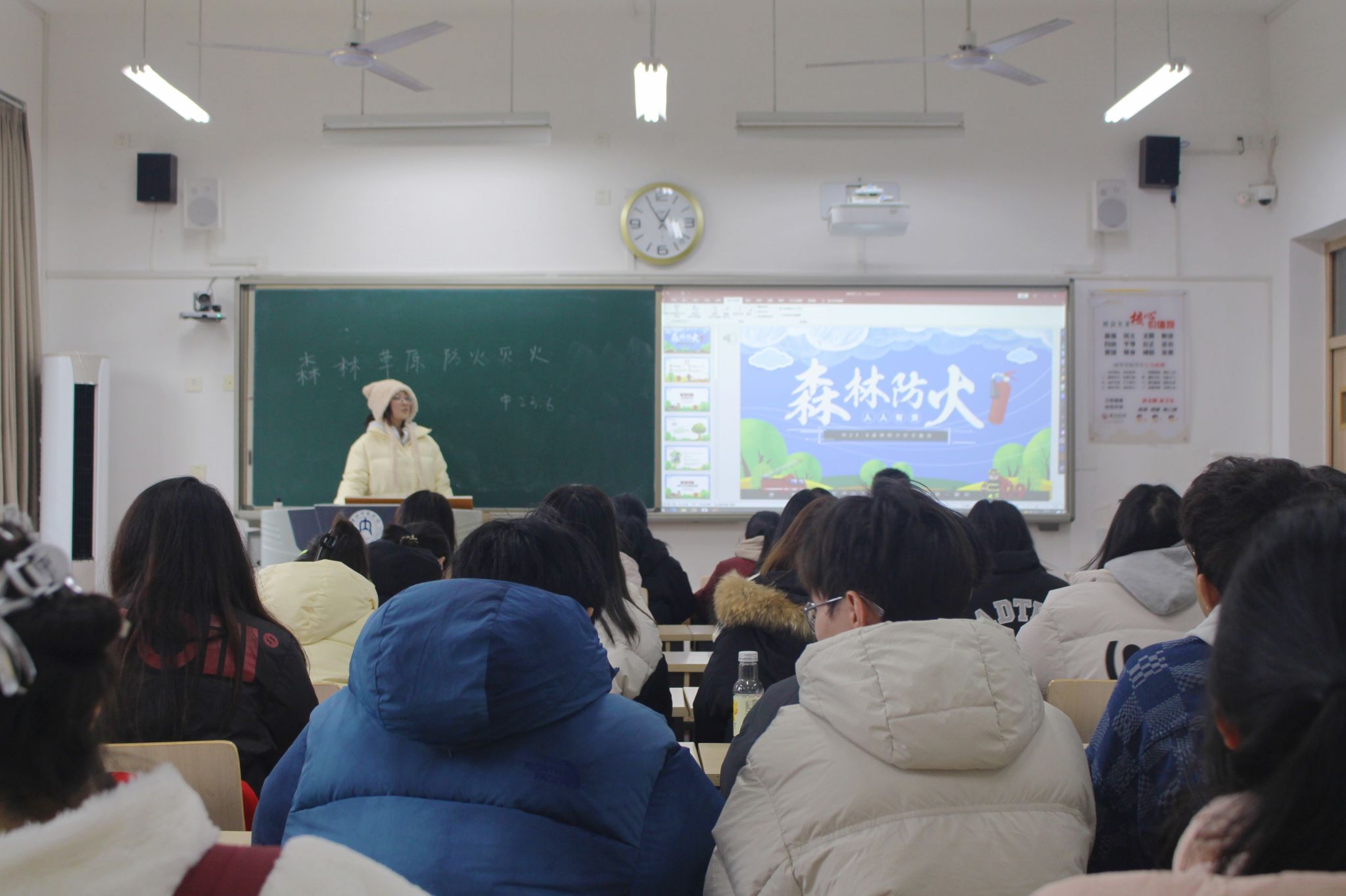 国家林草局3月15日启动全国森林草原防火宣传月,要求各级单位落实"预防为主、积极消灭"方针。在此背景下,公司组织开展森林防火主题教育活动,以"守护绿色生命线"为主题进行系统宣讲。3月17日下午4点在明德楼B106教室,公司董喆老师为2023级6班全体同学开展了以“森林草原防火灭火”为主题的班会。