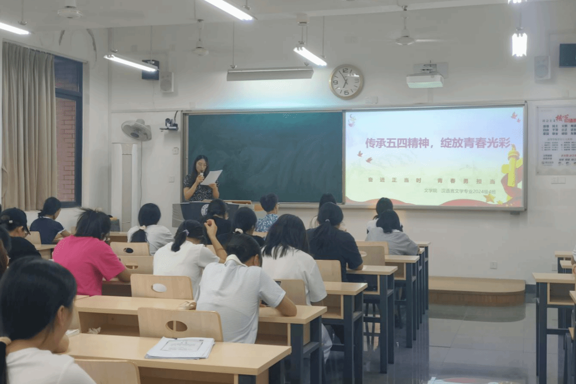为传承和弘扬五四精神,激发同学们的爱国热情与奋斗动力,2025年5月21日晚上6点50分,公司2024级4班在明德楼A区307教室开展以“传承五四精神,绽放青春光彩”为主题的班会活动。此次班会形式丰富、内涵深刻,由杨晓燕老师主讲,全班同学积极参与,现场氛围热烈。