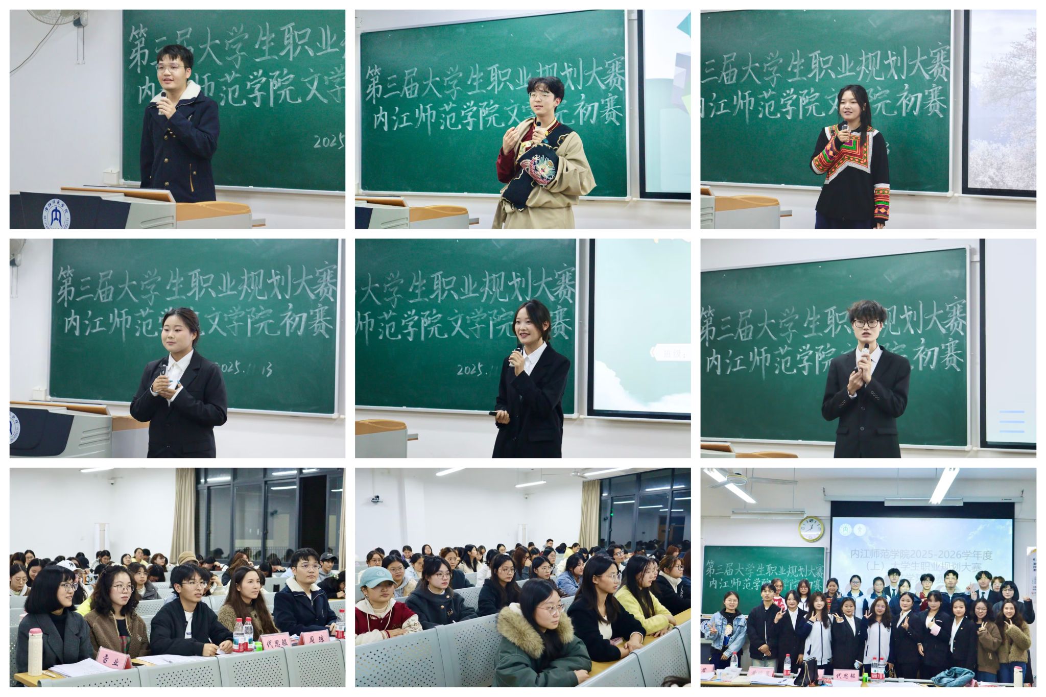 比赛现场气氛热烈,参赛选手围绕自我认知、职业环境分析、职业目标确立、评估与调整等多个方面,结合精美的PPT和生动的演讲,以多样化的形式阐述职业理想,呈现出兼具深度与个性的职业规划方案。其中,郑林祥同学以“西南地区语言振兴践行者”为职业目标,深入分析行业现状与职业责任,制定了清晰的短期与长期发展计划,展现出明确的职业发展路径。选手们的每一份规划都承载着对未来的憧憬,每一段演讲都传递出奋发向上的决心。