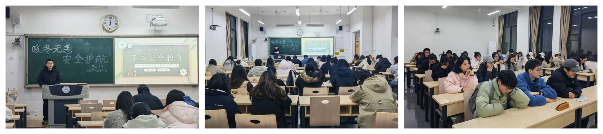 随着冬季气温骤降,各类安全隐患进入高发期。为切实增强员工安全防范意识、筑牢校园安全防线,12月21日晚7时,公司2023级7班在明德楼B区113教室召开“暖冬无恙,安全护航”冬季安全教育主题班会。本次班会由班主任钟思远老师主讲,2023级7班全体同学全员参与。