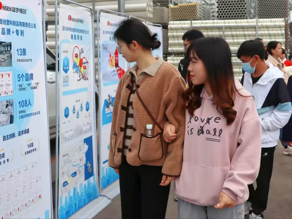 活动期间,同学们先后参观了内江融通高科先进材料有限公司、四川晶华新材料科技有限公司、四川宏特新材料科技有限公司、四川鸿宇恒创塑料制品有限责任公司、内江市天捷能源科技有限公司、四川新明塑业有限公司等重点企业。在企业相关负责人员的带领下,毕业生们相继走进生产车间,参观公司作业现场,近距离感受企业的日常工作。随后在企业领导的讲解下深入了解企业运行的基本情况、战略布局、人才需求及福利待遇等信息。在参观过程中,公司毕业生同学始终保持高昂的热情,积极探索、仔细观察,主动提出自己的问题和想法,现场气氛轻松和谐。