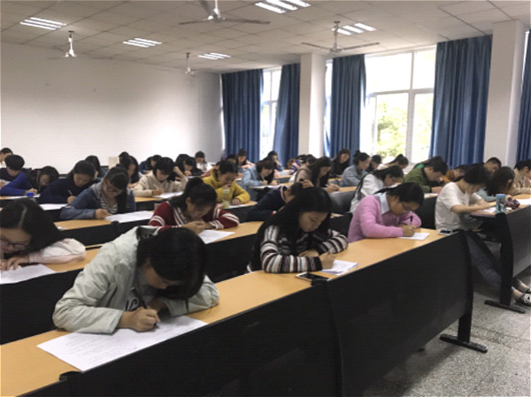 上午9点左右,招新活动笔试正式开始。组织部部长、副部长以及组织部各位干事作为监考,对整场考试的纪律进行严格把控。笔试结束后,在组织部部长们的带领下,干事们收齐试卷并集中批改。试卷批改完毕,组织部干事们及时通过短信通知笔试通过者面试时间。