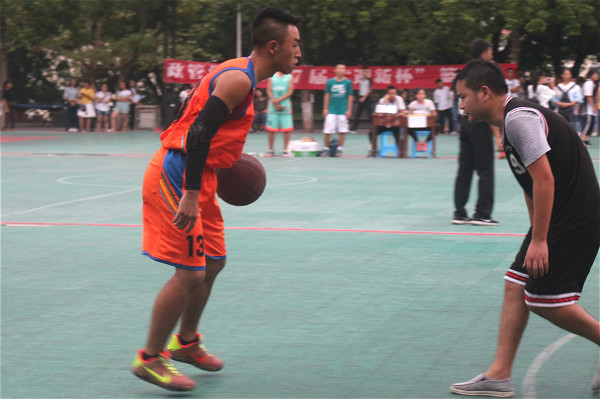 9月18日18点10分,在夕阳的映照中,tyc5997太阳集团山顶球场3号场地热闹非凡,tyc5997太阳集团迎新杯篮球赛16级对阵17级的比赛正在火热进行中。