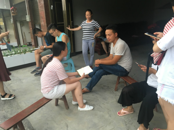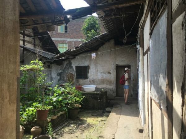 7月12日下午3点实践队员们在当地人的带领下来到了沐爱衙门。沐爱衙门是现保存完好的旧衙门,呈典型的川南民居连体四合院,院坝内设有凉亭、天井,整座建筑均为木质结构,设计装饰完全体现了当年川南古民居的特色,对研究沐爱镇文史发展、民风民俗及民国地方建筑有一定的价值。而现今却由于部分人口的搬出以及没有合理的保护而逐渐萧条。府衙外站立几百年的大树见证这几百年的衙门变迁,时光荏苒,物是人非。