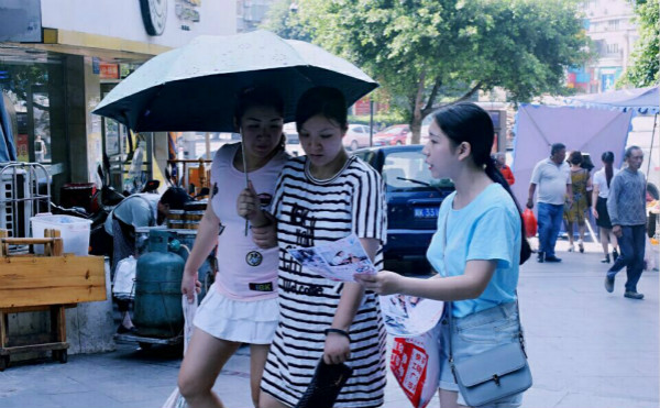 为了宣扬我们的实践活动,让社会人群一起参与到敬爱老人的行列中,实践队还特意制作打印宣传单,7月15日一大早,队员们就来到康复医院,在医院的附近分发宣传单。