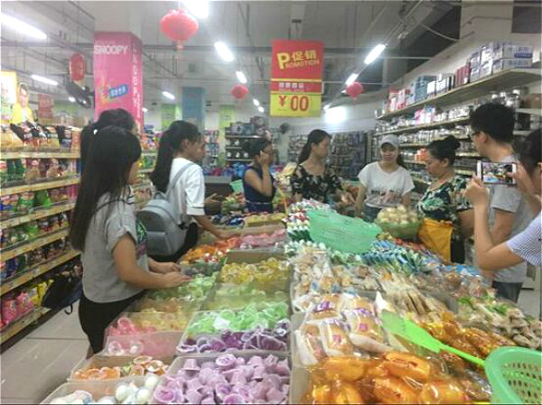 仪式结束后,寻访空巢义务敬老实践队的队员们前往超市购买了适合老年人食用的小蛋糕和小面包。队员白凤霞向大家说:我们选的不是面包,而是我们对老人深切的关怀。队员们将这句话铭记于心认真的为老人们挑选着礼物。