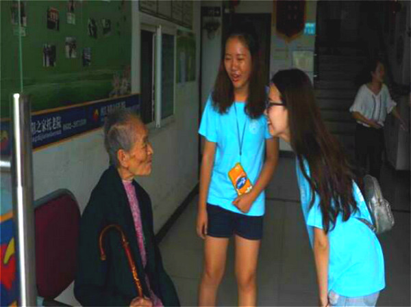 下午两点半,寻访空巢义务敬老实践队所有成员在东区校门口集合,大家拎着大包小包的慰问品,一同前往夕阳之家托老院。在工作人员的带领下,团队分为四人一组,为每一层楼的老人们分发了小面包,并同老人们进行交谈,询问老人们的饮食起居与身体状况。房间内,传出了队员与老人们的欢笑声。老人们看着队员为他们做的事,有感动,有欢乐。一位老奶奶告诉队员们,看到大家,就像看到了自己的孙子、孙女儿一样。