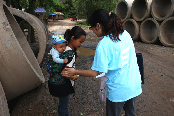 下午2点半,志愿者们拿上准备好的礼物,预先沟通好的小朋友家里进行家访。由于下过雨,加之对小朋友家住址不熟悉,志愿者们通过询问路人。途中,志愿者们还帮助差点跌倒的小男孩。下午2点20,一行人抵达第一位小朋友阿各家。阿各害羞地接过一位志愿者递上的礼物,露出大白牙以微笑回应。志愿者询问阿各一些关于学习的问题,阿各也一一回答。阿各在志愿者的谈话中了解到志愿者不了解其他小朋友地址,她便热情地说“姐姐,我给你们带路吧,我知道的。”