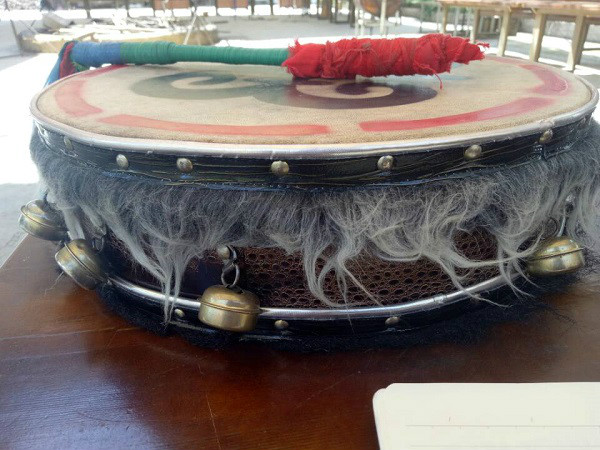 今天考察队的重点是羌族羊皮鼓。羌族与羊的渊源颇深,古时候羌族由甘肃、青海等地向南迁徙时,用领头羊驮着经书文字,过程中由于饥渴,羊背上的经书就被羊吃了。而羊在吃经书时被树上的灵猴发现了,灵猴告诉羌族人羊吃了经书,族人首领十分气愤,就把领头羊杀了,用羊皮制成羊皮褂子御寒。灵猴还告知羌族人以羊皮为鼓面,不断敲击,就能吐出羌族的经书。于是羌族人用羊皮制成羊皮鼓,不断敲击,以求得羌族经书文字。并把羊头挂于门前或祭台上,用于祭祀,这一习俗一直流传至今。现今,以羊皮鼓为主的羊皮鼓舞也被列为国家非物质文化遗产,为国家重点保护对象。