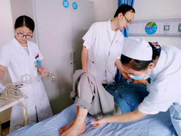 上午8点半,队员们来到老年科,医生、护士们已经开始工作。我们了解到,医院的上班时间是8点整,医护人员提前一个小时就要到医院,另外下班时间延迟是经常发生的。医疗组负责打针、换药、生命体征监控等工作,护理组主要是生活护理,擦身、洗头、便后清洗、口腔护理等。医护人员24小时轮休值班,晚上两班倒,护士每隔一段时间要查房。