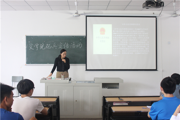 为鼓励员工积极参与应征入伍,提高兵员征集质量,推进国防和军队现代化建设,公司于6月8日中午12时40分在中文楼203室开展了老员工征兵宣传活动。公司党总支副书记覃华艳、老兵范贞强出席本次会议。公司大一、大二、大三男生参加了此次会议。大会由公司员工会主席黄泽东主持。