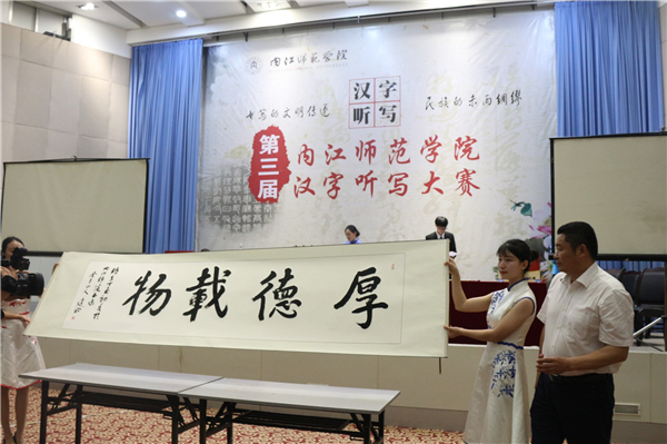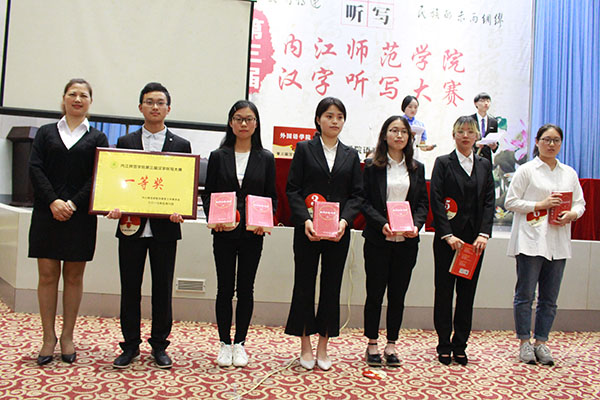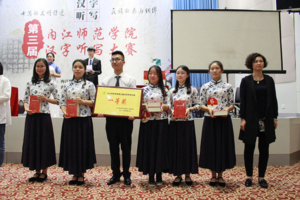 赛后,现场举行了嘉宾书法展示和颁奖仪式。公司代表队与外国语公司代表队分别获得专业组和非专业组的第一名,公司赖杭伶、肖作鑫、李娟三位同学在此次比赛中获得最佳风采奖。