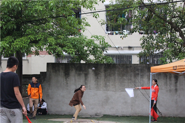 4月20日下午2点半,女子乙组铅球比赛在田径场举行,公司参赛的选手有2016级的喻娟,2015级的周丹洁、黄蜡英、阿西阿子和2014级的陈婉媛、陶璞。