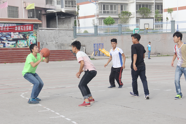 本次比赛,因为人数、年纪的差异,不同于一般正规的篮球赛,初三(4)班部分篮球爱好者组成员工队,支教队员安浩、杨俊组成支教服务队。比赛采取半场制,队员杜雷雷担任本次比赛裁判兼计分员。伴随着哨声的响起,现场的气氛极具攀升,双方队员迅速进入状态。支教服务队的球员安浩率先夺球,赢得先机,他们默契的配合,精准的投球为比赛赢得了开场第一球。一段激烈的争夺之后,由于身高优势,支教队员很快将比分拉开,员工组队员也不甘示弱,员工组队员杨雷随后迅速夺球,一个漂亮的中投为员工组赢得实力一分。时间一点点过去,支教组越发配合默契,防守严密,他们稳扎稳打,敏捷的动作,精准的投射,虽然比分差距越来越大,员工组的球员仍然斗志昂扬,他们明显加强防守,减少不必要的失误。时间一分一秒的过去,支教队杨俊再次拾球,一个漂亮的中投为支教服务队赢得了最后两分。