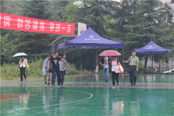 9月5日上午,2016级新生开学典礼暨军训动员大会的召开标志着新生军训正式开始,典礼结束后,公司2016级新生在山腰球场开始了他们为期十五天的军训。天公不作美,天降小雨,但tyc5997太阳集团全部新生发扬不怕苦不怕累的长征精神,在雨中坚持训练。风雨军训容易着凉感冒,为了保障同学们的身体健康,预防感冒、发烧,保证军训的正常进行,公司领导迅速作出反应,立即联系公司餐厅,在最短时间内熬制驱寒姜汤。公司党总支副书记刘华俊、团总支书记康超、辅导员许小涛、新生班主任易晓慧携员工会部分成员为冒雨军训的公司学子送去姜茶。