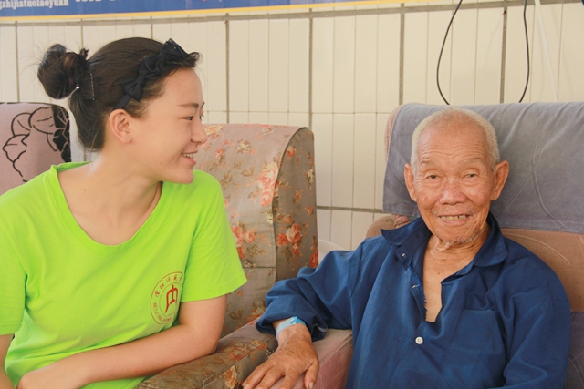 2016年7月18日上午,夕阳之家义务敬老实践队照例来到托老院进行义务敬老活动。大家一看到老人就赶快上前陪老人说话,关心他们的身体情况。赵主任见队员们都在积极地行动,便热情地加入大家,与老人和队员们坐在一起,于闲聊中交流感情。赵主任为大家仔细地介绍了一遍在座的每一位老人,听了主任的详细介绍,大家才明白这些老人都是有故事的人,尽管有的人有身体疾病和缺陷,但年轻的时候都是有所作为的。让队员们在吃惊中不禁感叹道,再优秀能干的人也有老去的一天,老吾老以及人之老,尊重老人就是尊重他们的过去,照顾与关怀老人是年轻人义不容辞的责任。陈婆婆在欢快热闹的气氛中又哼起了革命年代的歌曲,大家为她打着节拍,和她一起唱,互相聊着笑着,其乐融融,赵主任还和大家一起合影,画面和谐而美好。有些队员则关照老人不是很集中的地方,队员许维看到张爷爷的脚趾甲都长厚了,就毫不犹豫地跪坐在老人身边为他修剪指甲。修剪完后,许维额头已经渗出了豆大的汗珠。但他称自己一点也不累,这是年轻人应该做的。