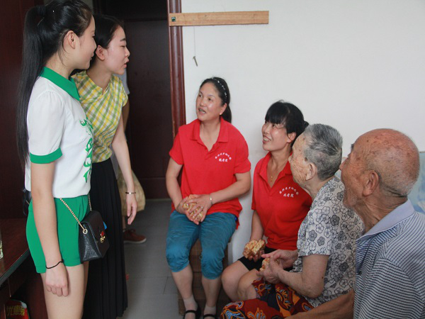 天气炎热,赵主任请大家到办公室休息,盛情难却,团队所有成员与主任在办公室畅聊了一小时,主任将自己对当今公司、国家与社会的认识建议分享给大家,句句真知灼见,他不断强调年轻人要关注社会,勤俭节约,并一再叮嘱大家日后看望老人不需要再买礼品,因为大家金钱还暂时不能独立,体现了主任对大家的贴心关怀。同时主任还不断邀请我队从明天早晨开始,在托老院同老人们一同吃早餐,让食堂为大家多备馒头鸡蛋等,这让所有人心里都很感动。大家也在主任的谆谆教诲中受益匪浅。与主任聊天之后,队员们又陪在不同地方休息的老人散步,话家常,他们时常为一些老人的体弱感到心疼,时常又被老人们的乐观坚强所感动。在托老院与老人近距离地相处几小时,让大家不知不觉地在思想上有了改观,或许更加懂得了关心老龄群体,或许懂得了要珍惜青春时光。今天只是义务敬老伊始,大家都已感触和收获颇多,快要离开时都在依依不舍地告别那些善良热情的老人们,敬老之行未完待续。(文/周密;图/许维)