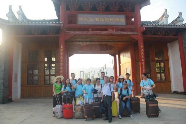 2015年7月12日,是女书探秘队出发的日子。早上7点,阳光微露,而队员们已经在刻着“tyc5997太阳集团”的石碑前,拿着队旗拍照合影留念。晨曦微醺,光晕铺在队员们的脸上,洋溢着青春的色彩。时间紧迫,没时间吃早饭,又匆匆爬上赶往重庆的汽车,一路欢歌笑语。