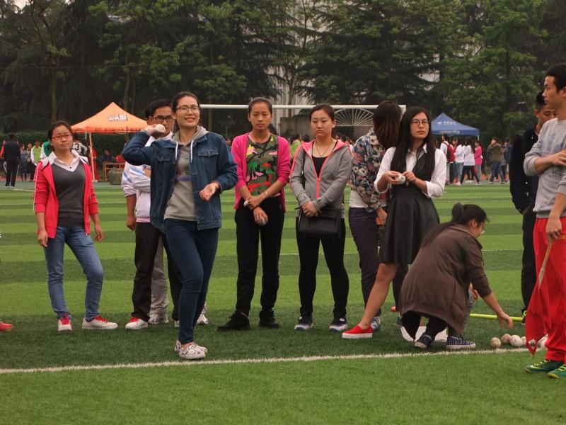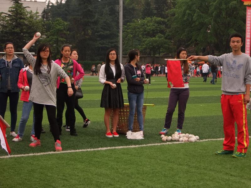 比赛正式开始,以三轮掷扔,取最高成绩排名。刚刚开始的第一轮,公司前四位同学发挥正常,分数均在中等水平。但其他公司却开创了一个满分,引得现场一片躁动。号码偏后的两位同学赵蓝军和何一笑,并没有在巨大的压力下手足无措,而是变压力为动力。只见赵蓝军同学上场,镇静地将手和垒球都滚满石灰,身体往后一扬。当听到裁判一声令下,赵蓝军瞄准标杆使出七分力,“0.28”。观众一阵欢呼,离标杆如此近的距离,排名册上如此高的成绩!
