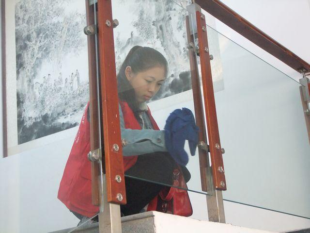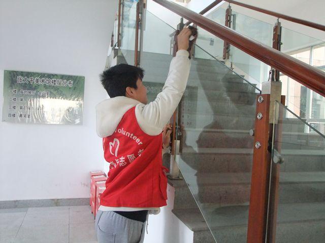 上午8点半,志愿者一行来到了张大千美术馆,拿着清洁工具开始了工作。为保持馆内安静的环境,不影响参观者的进出,志愿者们缓慢细致地清洁。在工作人员的指导下,志愿者们历经40分钟,终于有序地完成了清洁工作。看着美术馆明亮的门窗,洁净的地面,志愿者任丽说:“在冬天周末的早晨起床好困难,幸好我坚持来了,看到自己的劳动成果很骄傲。” 组织部部长周虹感慨:“去年是一拨,今年另一拨,每年志愿服务的老员工任期结束后,都会有新的志愿服务老员工接过志愿服务的“接力棒”,我相信志愿服务活动的爱心都会一直延续下去。”